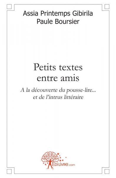 Ces Petits textes entre amis sont une compilation de récits volontairement courts. Ils se lisent ou se racontent à tout moment de la journée, de préférence le soir, entre la poire et le dessert. Ils ont été écrits pour devenir le début d'une histoire que le lecteur continuera à créer en vue de donner naissance à un nouvel écrit. Ils sont des clins d'oeil de lecture pour ceux qui aiment entrer rapidement dans le vif du sujet et s'en extraire avec la même spontanéité. Les intrus littéraires sont des souffles, des temps de pause ou de respiration.... Ils se glissent entre les textes, n'ont pas de lien direct avec le thème précédent et le thème à venir. Cette fantaisie est un "pousse-lire" destiné à attiser l'envie de continuer à déguster ces lignes...