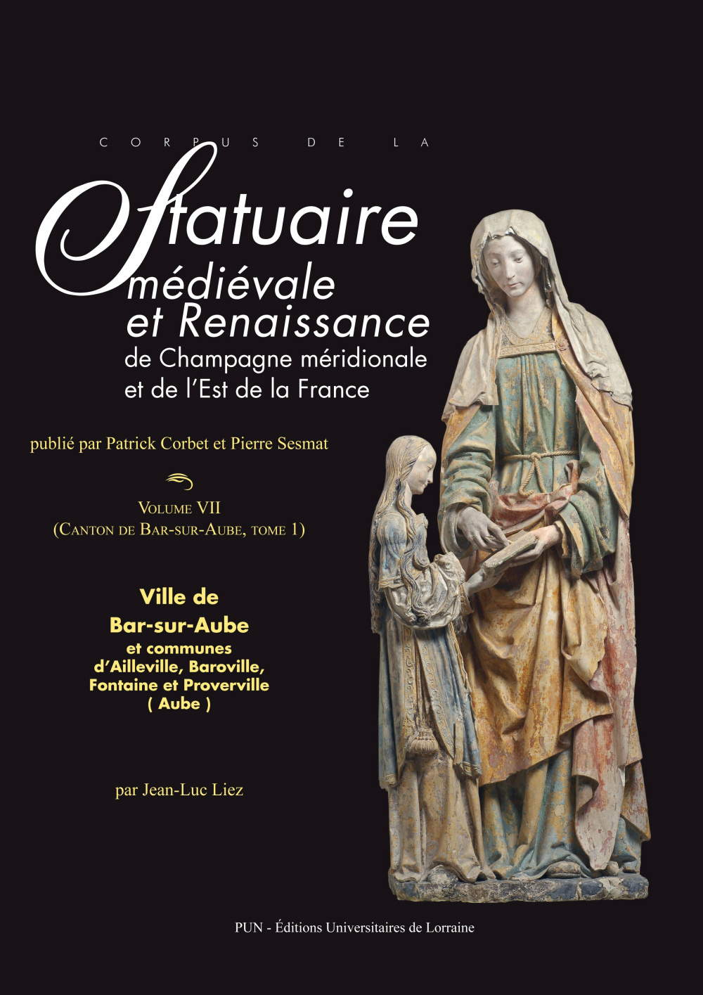 Extraits de l'avant-propos par Patrick Corbet et Pierre Sesmat, professeurs à l'Université de Lorraine: Ce septième volume de la série du Corpus de la statuaire médiévale et Renaissance de Champagne méridionale constitue pour celle-ci une forme de nouveau départ. La disparition des éditions Guéniot, prises dans la tempête économique touchant l’édition régionale, a privé notre entreprise d’un partenaire fidèle. (…) Aujourd’hui, les Presses Universitaires de Nancy - Éditions Universitaires de Lorraine, conformément à leur vocation d’éditeur scientifique, ont accepté de continuer l’aventure. De vifs remerciements sont dus à ses responsables. Nos chemins ramènent sur le théâtre géographique de l’est aubois, objet de notre tome initial, celui de Sandrine Derson sur la statuaire du canton de Soulaines-Dhuys. Comme en 2003, l’aide de l’Andra Centres industriels de l’Aube favorise et même autorise la présente publication, dont la rédaction a été confiée à M. Jean-Luc Liez, docteur en histoire de l’art, membre de la Société académique de l’Aube, déjà auteur de l’ouvrage consacré au canton voisin de Brienne-le-Château. (…) Le livre porte sur le canton de Bar-sur-Aube. Toutefois, la richesse et la valeur du patrimoine sculpté local ont contraint à réserver ce volume à la ville même de Bar, à laquelle ont été ajoutées, pour des raisons d’équilibre, quatre communes limitrophes de celles-ci, Ailleville, Baroville, Fontaine et Proverville. Un autre ouvrage de dimension comparable suivra donc sur les villages du canton, de part et d’autre de la vallée de l’Aube. Sa préparation, menée parallèlement, est déjà avancée et il suffit d’écrire les noms de Bayel, de Bergères ou de Jaucourt pour que les connaisseurs pressentent l’intérêt non moins primordial qu’offrira cette autre publication. Jean-Luc Liez a rencontré à Bar-sur-Aube une situation différente de celle de Brienne, où le corpus sculpté présentait souvent un caractère problématique. Beaucoup d’œuvres y étaient inédites et certaines témoignaient de déplacements, de mutilations et de restaurations qui en rendaient le commentaire malaisé. À Bar, en milieu urbain, les choses sont autres. Moins de pièces suscitent la méfiance et les chefs-d’œuvre n’ont pas échappé à la sagacité des prédécesseurs. La Vierge à l’Enfant de Baroville est citée comme remarquable par J. A. Schmollgen. Eisenwerth dans son ouvrage magistral sur la statuaire du XIV e siècle. Vingt fois reproduites, les statues majeures de l’école troyenne du XVI e siècle, la Vierge au bouquet de Saint-Pierre de Bar et la Sainte Anne éducatrice de l’Hôpital Saint-Nicolas, sont tout sauf ignorées. Le soubassement érudit au travail de recherche manquait donc moins. Pourtant les découvertes de l’auteur sont nombreuses. Ses observations rejoignent les analyses récentes de Julien Marasi pour ce qui concerne l’entourage du Maître de Chaource. Elles peuvent porter sur des niveaux de production dits populaires, comme dans la statuaire en bois de Fontaine et Proverville. Le curieux atelier itinérant « de Malaincourt » révélé par Anne Ollivier (qui a bien voulu rédiger les notices correspondantes) s’observe à Bar et à Fontaine. On le retrouvera en force à Lignol-le-Château et à Bayel. Au crédit de J.-L. Liez sera inscrit le regroupement de grandes Vierges à l’enfant datables des années 1540, apparemment caractéristiques de la zone. L’enquête méritera d’être poursuivie vers le département de la Haute-Marne. Reste la surprise de fond: l’ampleur de la production d’influence bourguignonne. Les statues relevant de cette inspiration se révèlent nombreuses dans le district. Elles sont dominées par de calmes et nobles figures en pierre de saints évêques, par exemple celle de saint Maclou (maintenant à Saint-Pierre), qui a son presque pareil dans une collection privée haut-marnaise. Tout au plus citées dans des guides, ces œuvres n’ont jamais été étudiées. Avouons que l’absence de leur prise en compte par les spécialistes de l’art bourguignon étonne, tant la région de Bar était liée aux zones plus méridionales. La ville appartenait au diocèse ancien de Langres et chacun connaît le dynamisme dijonnais en direction de la Champagne au XV e . En tout cas, bien des statues locales de la fin de ce siècle ont été insuffisamment remarquées, ce qui a été accru par la timidité des commentateurs troyens face à un ensemble échappant à leur période de prédilection et, disons-le, de gloire. Il y a toutefois une excuse à ce déficit. Elle tient aux vicissitudes subies par le patrimoine sculpté baralbin. En raison de la fermeture progressive et à présent totale de la collégiale Saint- Maclou, les œuvres qui y étaient