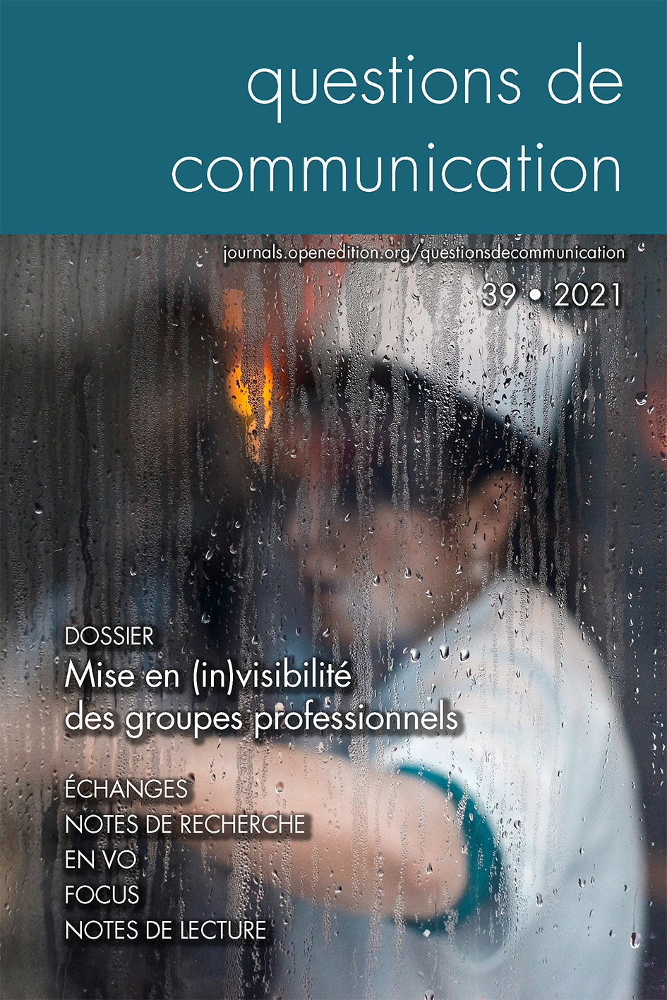Le «Dossier» de cette livraison porte sur la mise en visibilité ou l'invisibilisation de groupes professionnels, de l'instrumentalisation à la réappropriation. Les «Notes de recherche» portent notamment sur la pensée managériale américaine, les séries, la robotique sociale, les communautés en ligne et la prise de parole. La rubrique «En VO» accueille un article sur la compréhension des diasporas latino-américaines et leurs relations aux médias. Les « Focus » proposent une lecture approfondie du Traité de documentation. Le livre sur le livre : théorie et pratique (Paul Otlet) et de En attendant les robots. Enquête sur le travail du clic (Antoni A. Casilli). Enfin, les «Notes de lecture» rendent compte de 50 publications.