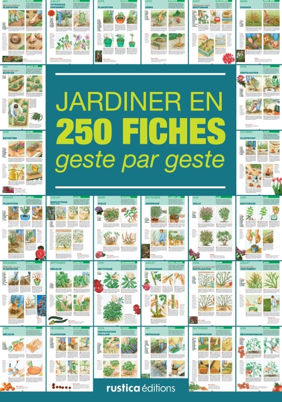 Planter, semer, repiquer, tailler, greffer, protéger, multiplier, bouturer… autant de gestes qui n'auront bientôt plus de secret pour vous grâce au guide Jardiner en 250 fiches . Ces 250 fiches illustrées vous indiquent comment procéder étape par étape. Elles concernent des plantes très répandues, mais aussi des végétaux moins communs que vous aurez plaisir à tenter. Chaque fiche précise le mois où vous devez réaliser le geste, les différentes étapes à suivre et le matériel nécessaire. L'ensemble de ces fiches constitue un précieux calendrier des principaux travaux à effectuer au jardin pour être sûr de ne rien oublier. Au sommaire : Fleurs du jardin : Agapanthe, Arum, Aubriète, Bégonia tubéreux, Campanule médium, Capucine naine, Cosmos, Crocus, Dahlia, Delphinium, Érémurus, Fritillaire impériale, Fuchsia, Gaillarde vivace, Gaura, Géranium, Giroflée, Glaïeul, Immortelle, Iris, Lavatère annuelle, Lis, Lis de la Madone, Lupin vivace, Marguerite, Muflier, Muguet, Myosotis, Narcisse, Nigelle de Damas, Œillet d'Inde, Œillet mignardise, Œillet de poète, Pâquerette, Pavot de Californie, Pélargonium lierre, Pensée, Perce-neige, Pétunia, Pivoine, Pois de senteur, Primevère, Rose trémière, Tulipe. Arbres, arbustes et grimpantes : Aucuba, Buddléia, Buis, Camélia, Clématite à floraison estivale, Forsythia, Fusain, Glycine, Hibiscus, Hortensia, Laurier palme, Laurier-rose, Lavande, Lilas, Magnolia, mimosa, Pyracantha, Rhododendron, Rosier buisson, Rosier grimpant non remontant, Seringat, Thuya en haie, Troène, Viorne boule de neige, Weigélia. Fruits : Abricotier, Cerisier, Citronnier, Fraisier, Framboisier non remontant, Pêcher palissé, Poirier, Pommier, Prunier, Vigne. Légumes et aromatiques : Ail blanc, Basilic, Carotte, Chou pommé, Ciboulette, Courgette, Épinard, Haricot vert nain, Laitue, Laitue à couper, Mâche, Oignon, Persil, Poireau d'hiver, Pois nain à grains ronds, Pomme de terre, Radis, Thym, Tomate. Lexique.
