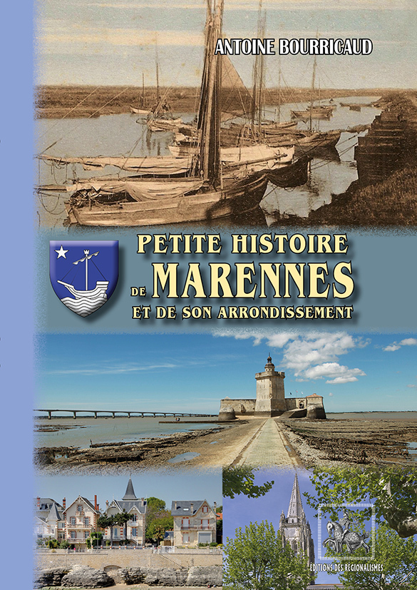 Initialement publié en 1867, puis revu et réédité en 1925, cet ouvrage traite de l’histoire ancienne de Marennes et de ses environs (Hiers-Brouage, Arvert, La Tremblade, Etaules, St-Just, St-Sornin, Le Gua, Le Château, St-Trojan, Dolus, St-Pierre, St-Denis, Moëze, Soubise, St-Nazaire, Beaugeay, Echillais, St-Agnant, Champagne, St-Jean d’Angle, St-Symphorien, Les Mathes, Chaillevette, St-Augustin, Mornac, Royan, St-Palais-sur-mer). C’est l’occasion de (re)découvrir nombre d’informations historiques ou anecdotiques sur Marennes et l’ensemble de son arrondissement, d’Echillais à Royan. Antoine Bourricaud (1820-1887), né à Yves (Charente-Maritime), fut secrétaire de mairie à Marennes, instituteur puis professeur à Saintes, et, à partir de 1860, un membre actif et éminent de la Société des Arts et Monuments de la Charente-Inférieure.