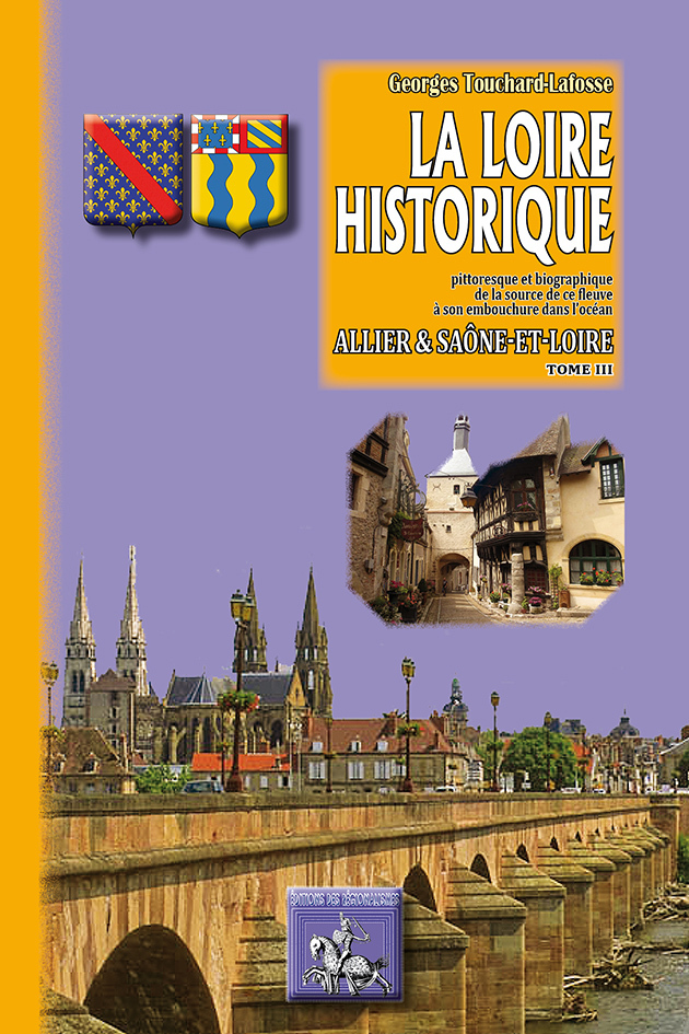 Quel ouvrage — sinon la Loire Historique — pourrait porter le titre enviable de monument du Régionalisme ? Paru en cinq tomes, en 1851, cet ouvrage embrasse tout le bassin de la Loire, de sa source à son embouchure, et entreprend d’en conter l’histoire et les événements historiques et anecdotiques, au fil des départements traversés, en plus de 3.500 pages de textes et d’illustrations ! Une superbe défense et illustration de la Province dans la France centralisatrice du XIXe siècle ! La présente réédition, entièrement recomposée, se fera en 11 tomes correspondant à l’intégralité du travail titanesque de G. Touchard-Lafosse. Le présent volume traite plus particulièrement du département de l’Allier — et partiellement de celui de la Saône-et-Loire (arrondissement de Charolles) — Moulins, Vichy, Varennes, La Palisse, Saint-Pourçain, Commentry, Montluçon, Dompierre, Bourbon-l’Archambault, mais aucun des cantons du département n’est oublié, faisant de cet ouvrage une véritable encyclopédie historique locale, départementale et régionale.