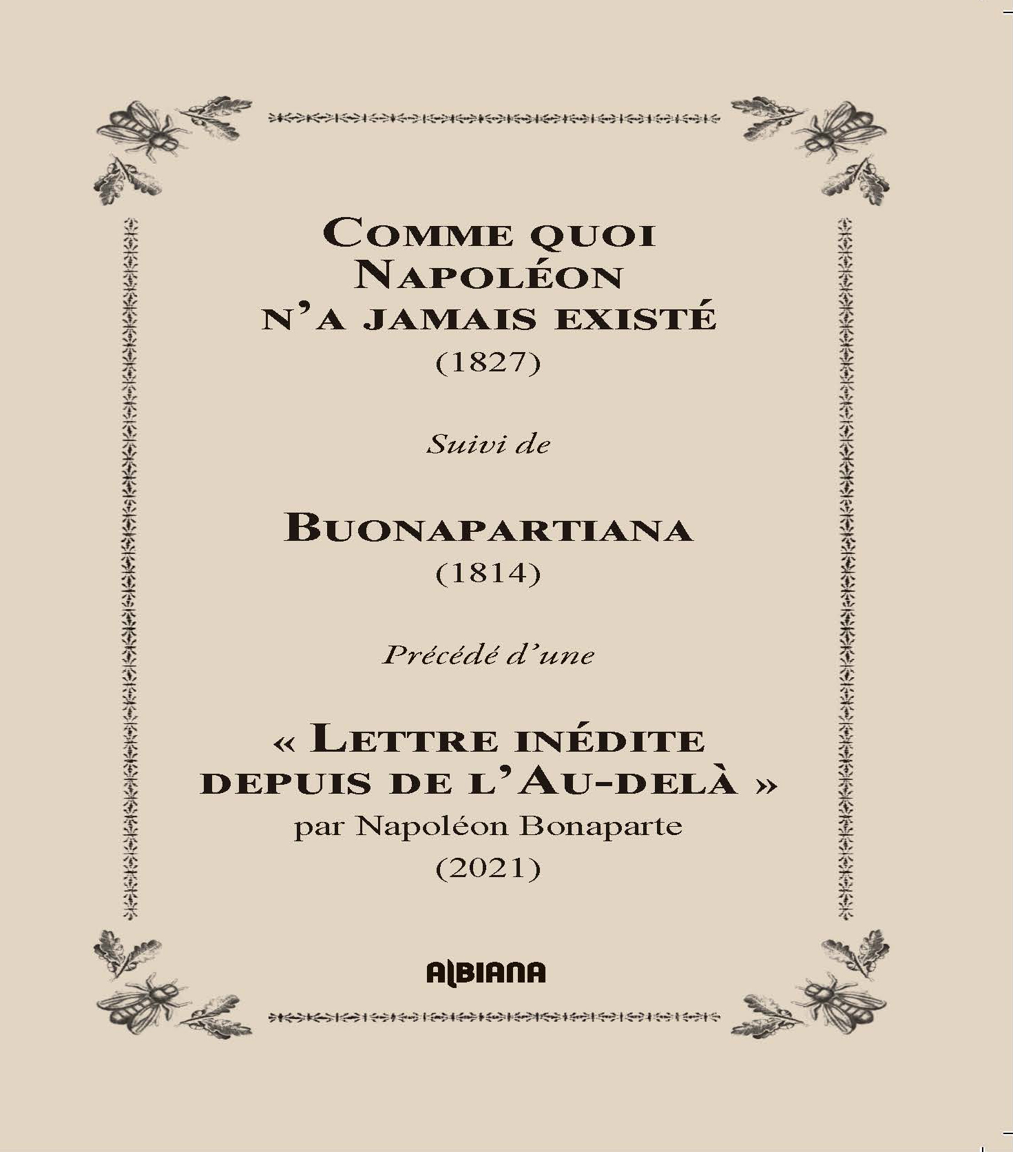 "Je vous confie donc pour examen ces deux ouvrages exemplaires publiés de mon vivant. Réussiront-ils à vous convaincre de ne pas prendre pour argent comptant les affirmations les plus éhontées ? Le premier d'entre eux nie carrément mon existence par l'exercice d'une pseudoscience, l'autre se délecte de toutes les rumeurs les plus absurdes et les masque dans un tourbillon de faits avérés. Chacun eut un certain succès... À vous donc, chers amis, de démêler le vrai du faux... Pour vous d'abord, car pour moi la vérité est immuable depuis deux cents ans. Eternellement vôtre, Napoléon."