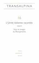 Ce numéro de Transalpina (comme le précédent n° 15) examine la façon dont le Risorgimento a été célébré et représenté en littérature, dans l'historiographie et les arts. Fruit d'un colloque qui s’est tenu à l’université de Caen Basse-Normandie à l’occasion des commémorations des 150 ans de l’Unité italienne les 20, 21 et 22 septembre 2011, le volume présente les contributions d’experts reconnus français et italiens autour de la question de la naissance de l’Italie au XIXe siècle et de son interprétation, en assumant clairement la nécessité de défendre le Risorgimento. À l’image des deux organisateurs, une italianiste et un historien, il illustre la rencontre féconde entre deux champs disciplinaires qui avaient tendance à s’ignorer, réunis par l’objectif de mieux faire connaître l’événement fondateur de l’Italie à la lumière des acquis des nouvelles recherches. Ce second volume, consacré aux voix et aux images du Risorgimento, présente des études sur les auteurs littéraires qui ont « raconté » l’Unité au moment de sa réalisation (Rovani, D’Azeglio, De Amicis, Verga), ainsi que sur les mémorialistes, les poètes et les artistes (peintres, librettistes, musiciens, cinéastes…) qui ont illustré à leur manière l’épopée risorgimentale.
