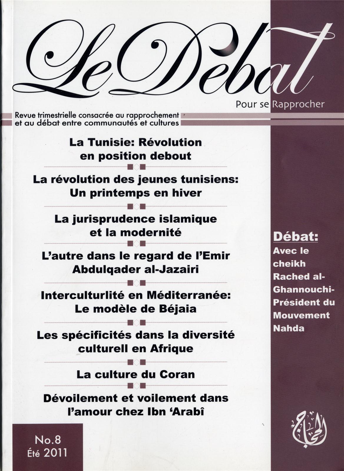 Les sujets abordés dans cet ouvrage sont les suivants La Tunisie Révolution en position debout La révolution des jeunes tunisiens Un printemps en hiver La jurisprudence islamique et lamodernité L'autre dans le regard de l'Emir Abdulqader alJazairi Interculturalité en Méditerranée Le Modèle de Béjaia Les spécificités dans la diversité culturelle en Afrique La culture du Coran Dévoilement et voilement dans l'amour chez Ibn'Arabî 1 Débat Avec le cheikh Rached alGhannouchi Président du Mouvement Nahda
