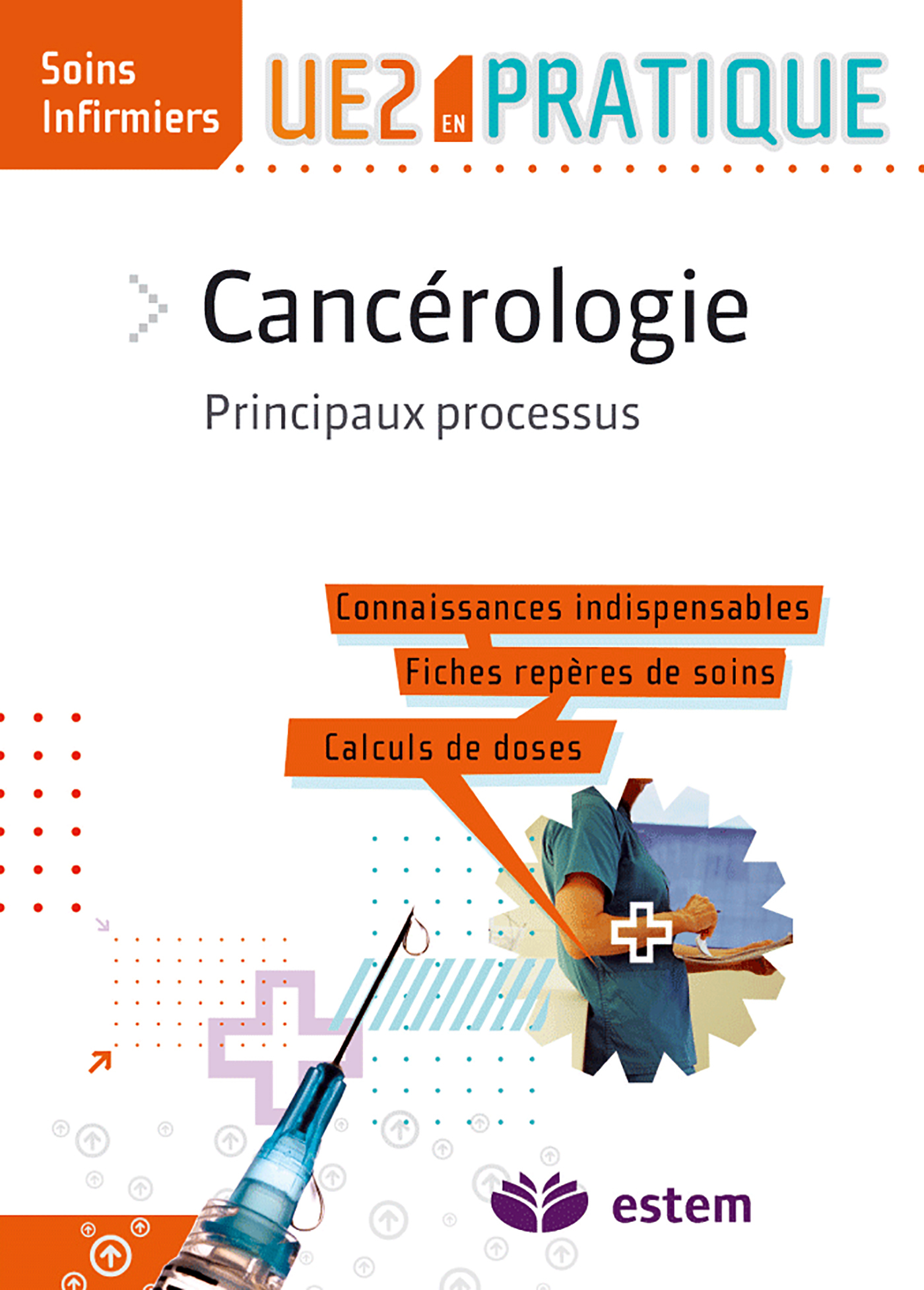Cet ouvrage est un outil complémentaire aux cours de l'UE 2 : il rassemble les savoirs et savoir-faire en cancérologie utiles aux étudiants en soins infirmiers. > Toutes les connaissances indispensables Cet ouvrage présente, avec la volonté d'être clair et synthétique, les savoirs requis pour comprendre les situations cliniques rencontrées en cancérologie : * les notions essentielles à connaître en anatomie, physiologie et sémiologie ; * les principaux cancers avec l'indication systématique du processus physiopathologique dont elles relèvent. > Les soins infirmiers en cancérologie Ils sont traités sous la forme de fiches repères de soins qui présentent les gestes techniques de base à réaliser dans le respect des règles d'hygiène, d'asepsie et de sécurité requis. Et pour vous mettre en situation de soins, retrouvez aussi des cas cliniques avec des calculs de doses propres à la cancérologie , corrigés et commentés.
