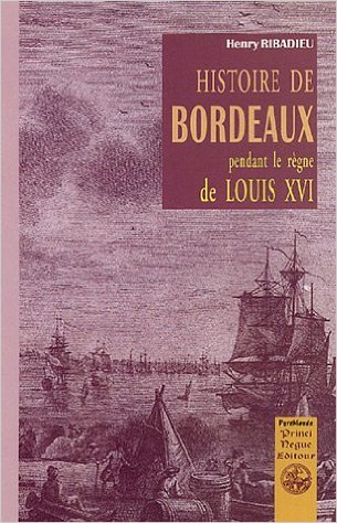 L’auteur de La Conquête de la Guyenne par les Français ne dissimula jamais ses opinions royalistes, même sous le Second Empire. Dans cet ouvrage paru en 1853 — à l’occasion du projet de remettre en place la statue de Louis XVI à Bordeaux —, Ribadieu se lance dans une évocation de Bordeaux à partir de 1775, avènement de Louis XVI au trône de France. Cette défense et illustration de son règne à Bordeaux est, somme toute, facilitée car la ville est alors à l’apogée de son second âge d’or. Reste une évocation brillante et complète de la vie de Bordeaux à la veille de la Révolution, où lettres, arts, sciences, architecture, commerce, marine, industrie et politique sont en grande effervescence.