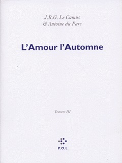 "Même le temps nous amuse, par ici. Ce n'est pas seulement de minute en minute, qu'il change, mais aussi d'un virage de la route au suivant - presque d'un bord à l'autre. En plein soleil on peut jouer à s'enfoncer dans la brume et à s'y perdre, disparaître. Là, pfffftttt, plus là. Comme jadis à San Francisco ("Est-ce que tu me souviens ?"), on entre et sort des saisons à volonté : trois pas de côté et c'est l'automne, en riant." L'Amour l'Automne est le troisième volume de Travers et le cinquième des Églogues, "trilogie [Passage, Échange, Travers] en quatre livres [Passage, Échange, Travers, Lecture (Comment m'ont écrit certains de mes livres)] et sept volumes [Passage, Échange, Travers, Été (Travers II), L'Amour l'Automne (Travers III), Travers Coda, Index & Divers (Travers IV), Lecture (Comment m'ont écrit etc.)]."