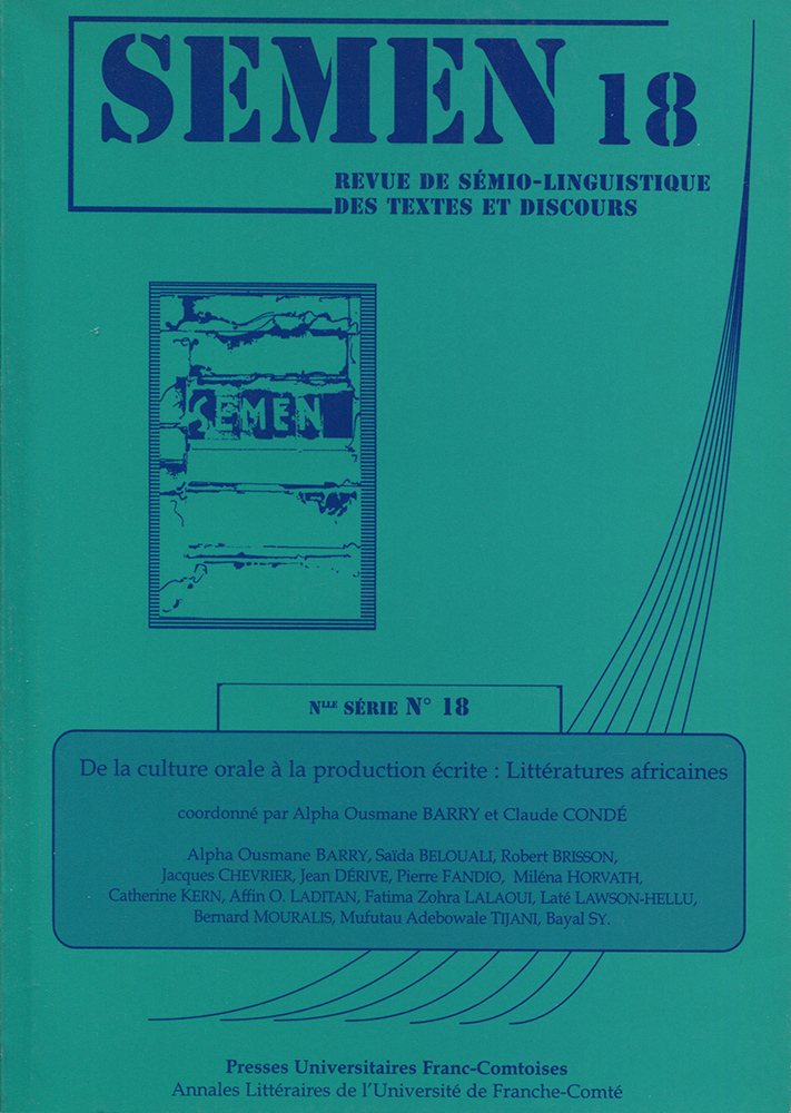 Le volume réunit treize contributions qui abordent la problématique des littératures africaines, principalement Afrique noire et Maghreb, sous des aspects variés, allant de la tradition aux formes les plus contemporaines de l’orature, en passant par les avatars singuliers des œuvres et des voies d’écrivains. Deux thématiques scindent le numéro : la première est consacrée aux rôles décisifs et multiples de l’oralité dans la création littéraire écrite, et la seconde dédiée aux poétiques de l’oralité dans des contextes historiques et esthétiques différents.