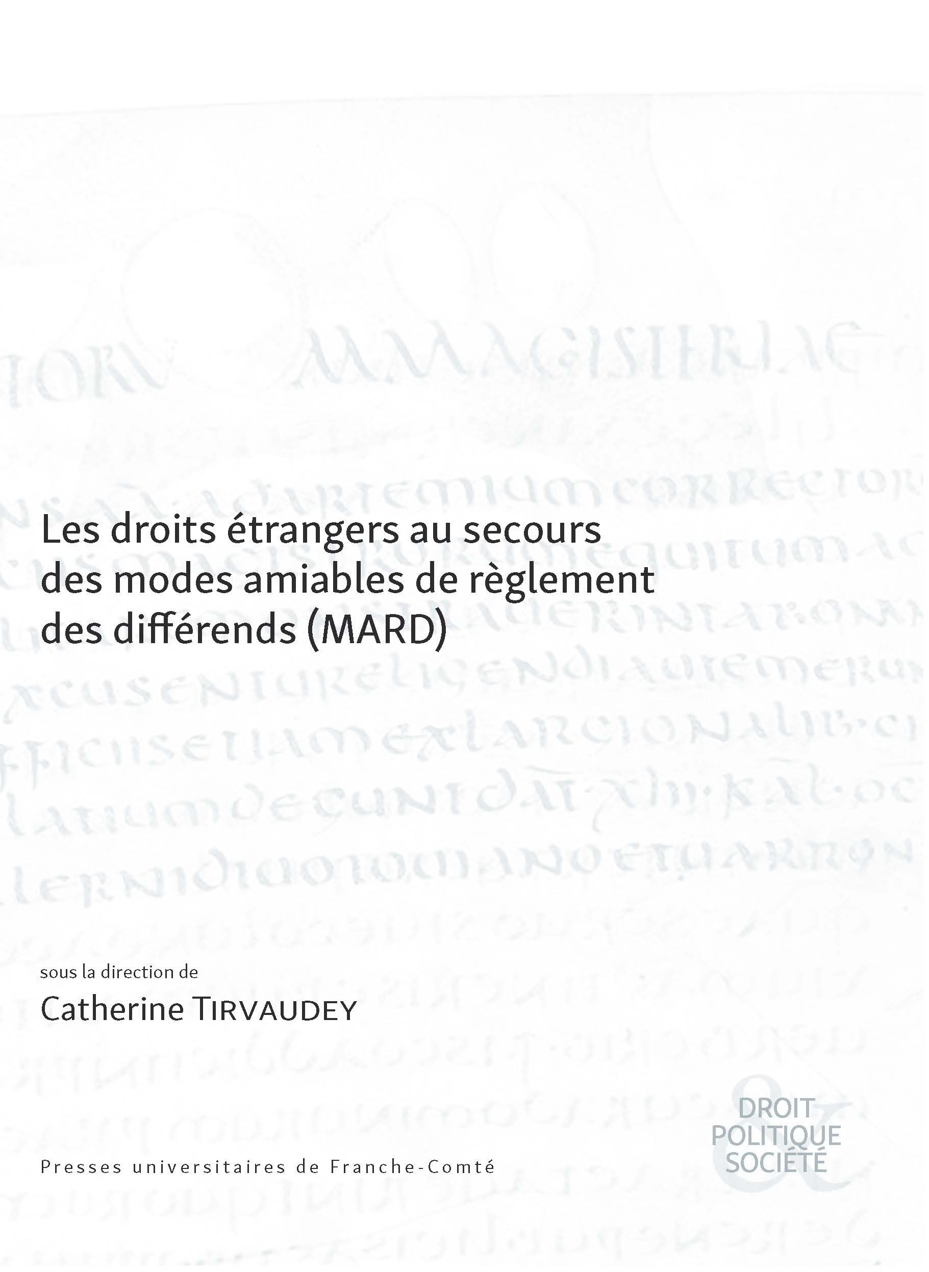 Les modes amiables de règlement des différends (MARD), nommés Alternative Dispute Resolution (ADR) dans les pays anglo-saxons et Prévention et règlement des différends (PRD) au Canada, sont présentés comme une possible solution pour une meilleure efficacité de la justice, et comme une « voie douce » face à l'action traditionnelle en justice. Cet ouvrage, fruit d'un colloque à Besançon (mars 2017) entend présenter des expériences de MARD-ARD-PRD, balbutiantes ou bien établies dans les procédures, ce dans divers pays européens, asiatiques et africains, ainsi qu’au Canada.