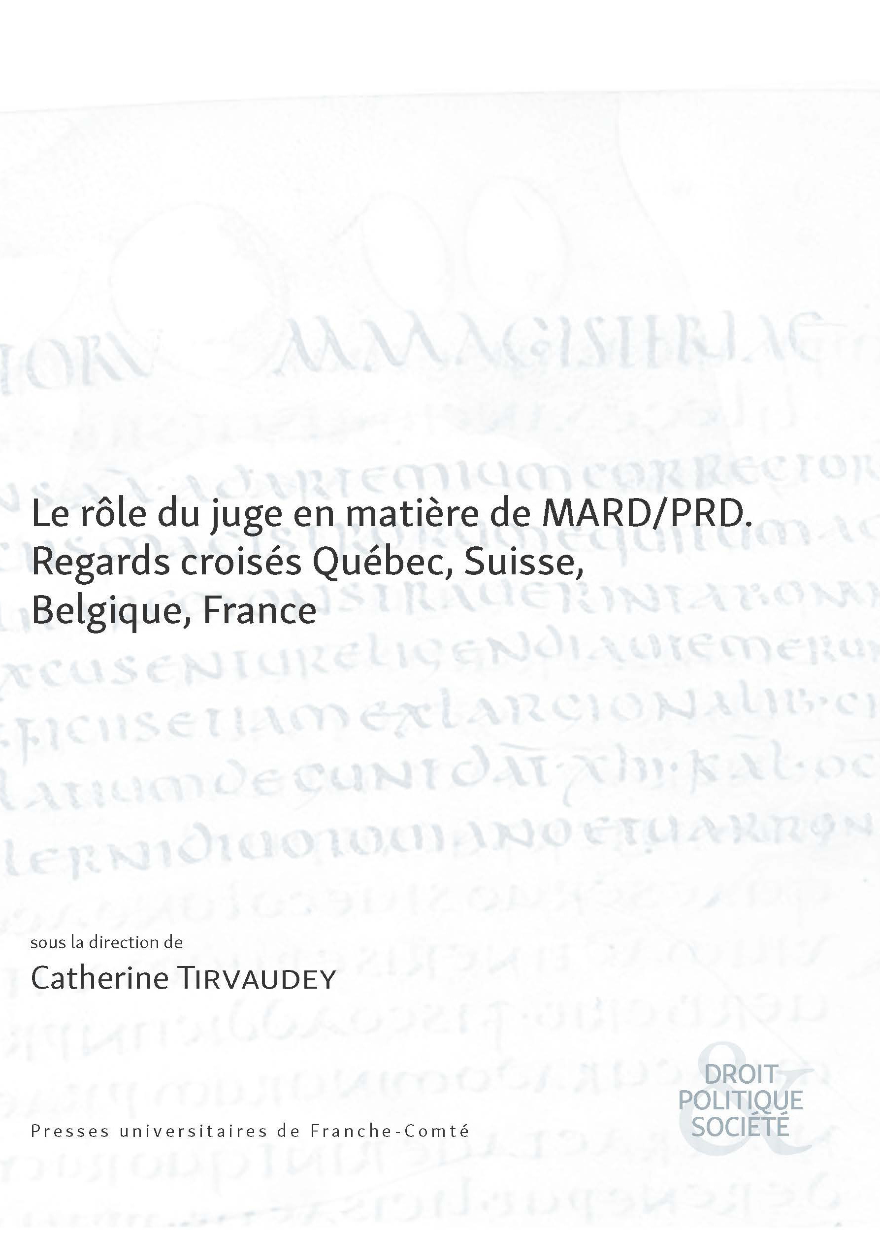 Cet ouvrage, fruit d'un colloque qui s'est déroulé à Besançon en novembre 2018, s’intéresse à la perception et au recours aux MARD/PRD dans les juridictions française, canadienne (Québec) et suisse. Y sont abordés à la fois le choix opéré par le juge, préférant le mode amiable au contentieux classique, la manière de le mettre techniquement en œuvre et enfin ce qu’il modifie dans la mission du juge et dans la vision qu’il a de la justice. Approfondissant la réflexion une thématique innovante, ce livre vient en complément d’un ouvrage récent des PUFC sur les droits étrangers, notamment anglo-saxons, au secours des MARD/PRD.