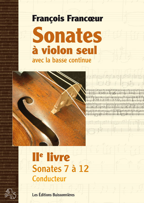 Partition Format 22,5 x 32 cm, imprimé sur papier ivoire 100 g Recueil composé de trois livres : conducteur 56 pages partie séparée basse 36 pages partie séparée violon 36 pages Compositeur François Francoeur. Révision : Emmanuel Rousson. La première partie du livre II (sonates 1 à 6) est disponible. Le livre I (sonates 1à 6 et 7 à 12) sera disponible début 2011. Compositeur et violoniste virtuose, François Francœur reste relativement méconnu, alors qu'il côtoya les plus grands, à Versailles et à l'Académie royale de Musique. Il composa nombre de pièces instrumentales et lyriques qui rencontrèrent un vif succès en leur temps. François Francœur signe ce deuxième livre de sonates pour violon et basse en 1730. La structure de ses sonates, très équilibrée, comprend 4 à 5 mouvements, où se succèdent mouvements italiens (adagio, allegro) et danses françaises (allemande, sarabande, courante, gavotte...). Francœur y développe un style composite et très personnel, où se mêlent influences françaises et italiennes, notamment par les mélismes, coloratures et fioritures, très inspirés de Corelli. Les bariolages, très italiens, côtoient les agréments et les notes inégales à la française. Ces sonates nous interpellent par leur raffinement, leur élégance, leur sobriété. Le style, gracieux et fluide, où se mêlent tendresse et poésie, nous offre des lignes mélodiques expressives et sensibles. La musique y est profonde, ne cédant jamais à un excès de virtuosité.
