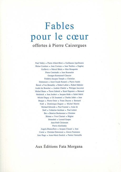 Ce volume d’hommage au travail universitaire de Pierre Caizergues (spécialiste d’Apollinaire, de Cocteau et de Cendrars) réunit par le biais de textes pour la plupart inédits une cinquantaine de poètes parmi lesquels : Guillaume Apollinaire, Yves Bonnefoy, André du Bouchet, Michel Butor, Blaise Cendrars, Andrée Chédid, Jean Cocteau, Lorand Gaspar, Guillevic, Philippe Jaccottet, Charles Juliet, Bernard Noël, Jacques Réda, Max Rouquette, Salah Stétié, Jean Tardieu, Paul Valéry. Plusieurs peintres interviennent également dans ce volume : Pierre Alechinsky, Jean Cortot, Alecos Fassianos, Jean Hugo...