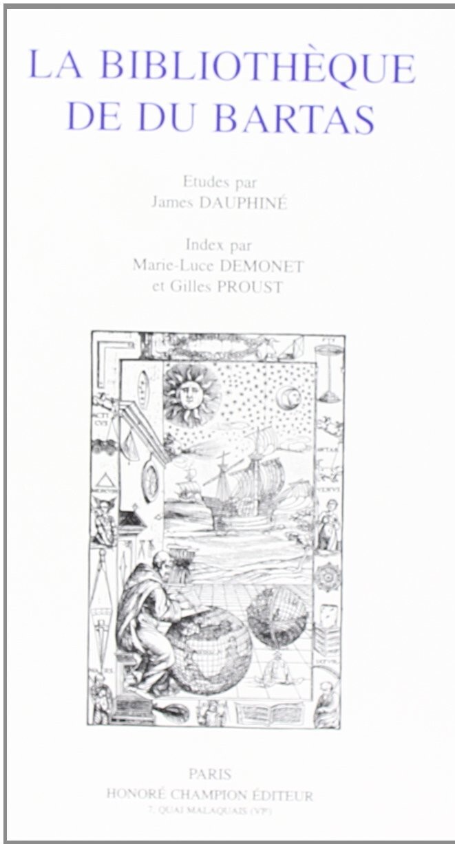 Comportant deux parties : l'une constituée d'études, par James Dauphiné, l'autre formée de l'index de La Sepmaine, établi par Marie-Luce Demonet et Gilles Proust. La Bibliotheque de Du Bartas a l'ambition de montrer comment Du Bartas use du savoir et écrit une œuvre encyclopédique à finalité théologique. Héritier de Ronsard, « le divin gascon » a recherché par la poésie et l'encyclopédisme, à traduire l'éblouissant spectacle des premiers matins du monde. Le poème de La Sepmaine n'est pas le simple relevé, plus ou moins ordonné, des merveilles de la nature, car Du Bartas consciemment a construit son « épopée » comme un édifice, un palais. Au fil des VII Jours de La Sepmaine apparait et se dessine une construction réceptacle de toute sagesse et de toute science, la bibliothèque. La Sepmaine est l'illustration exemplaire d'un de bibliotheca que Du Bartas n'a pas écrit, mais auquel, bien avant Borges et Eco, il a certainement rêvé.