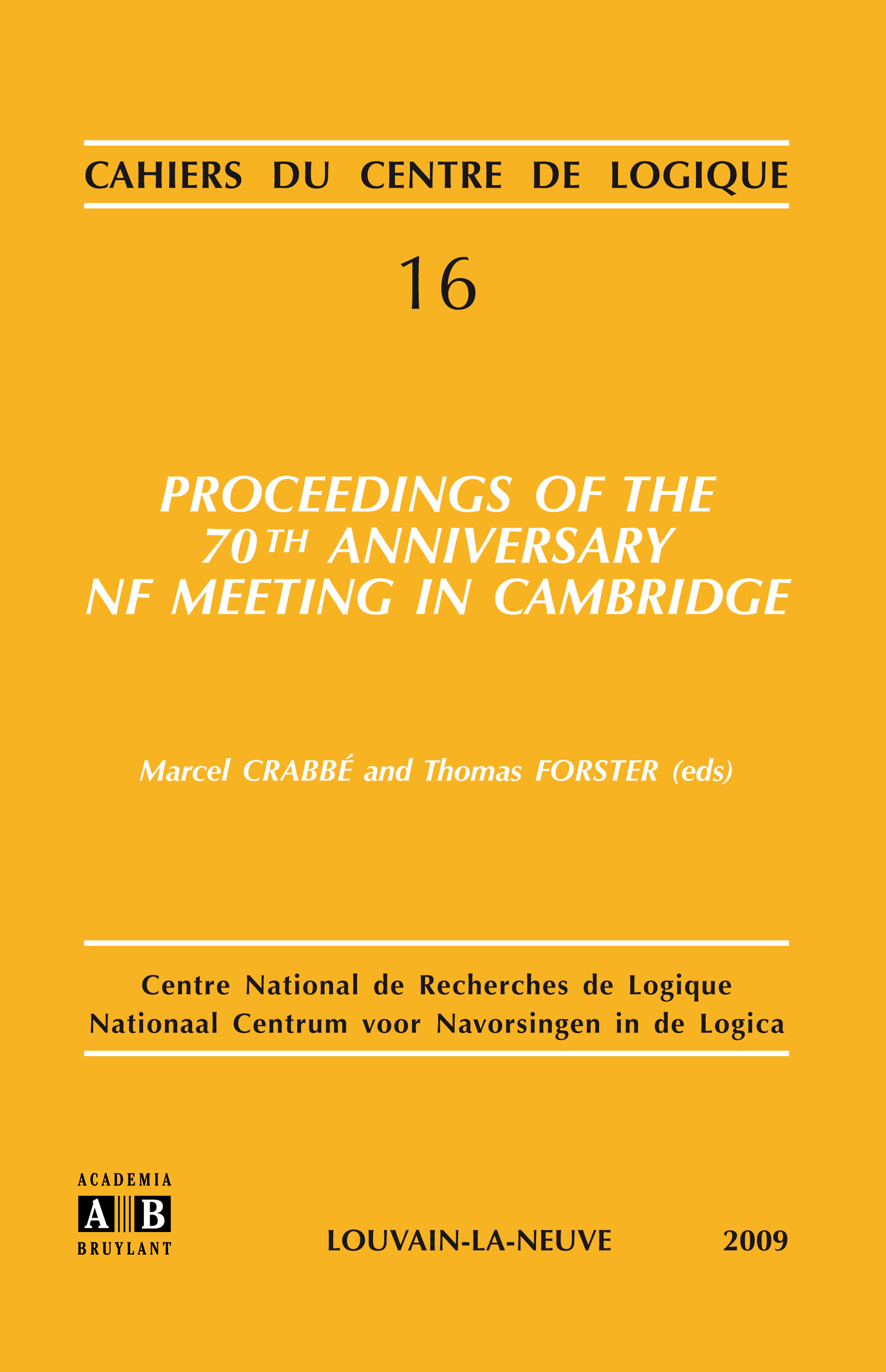 This cahier contains almost all the contributions to the two day meeting, commemorating the 70th year of the publication of Quine's seminal paper New Foundations for Mathematical Logic, in which he describes for the first time the remarkable set theory