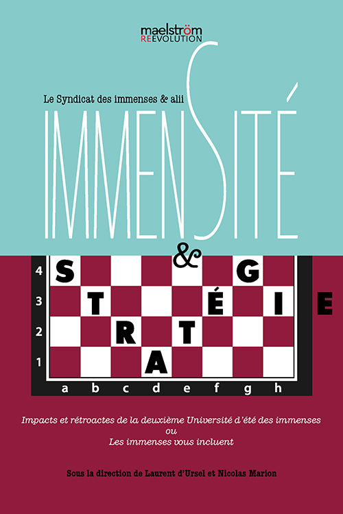 Ce volume résulte de la deuxième université d’été des Immenses, qui s’est tenue le 18 décembre 2023 à l’UCLouvain Saint-Louis Bruxelles. Ne se limitant pas à rendre compte de toute la richesse de l’événement et des débats et réflexions qui s’y sont déployés, le livre se propose d’inclure les lecteurs et lectrices dans l’immense travail stratégique dont la « politique de l’immensité » résulte. De là son sous-titre : Les immenses vous incluent. Les trois thèmes choisis sont : 1. L’humanimalisme est essentiel 2. Fin des injustices ou des inégalités : quelle priorité ? 3. Illégalités, incuries et autres fourberies de l’État Immensité et Stratégie n’est pas seulement les « actes » du colloque que fut la deuxième université d’été des Immenses mais constitue une boîte à outil stratégique dont les concepts s’ancrent dans l’actualité de deux guerres conjointes : définitivement sociétaliser la problématique du sans-chez-soirisme et irrévocablement établir au cœur de tous les cerveaux qu’il n’est pas une fatalité.