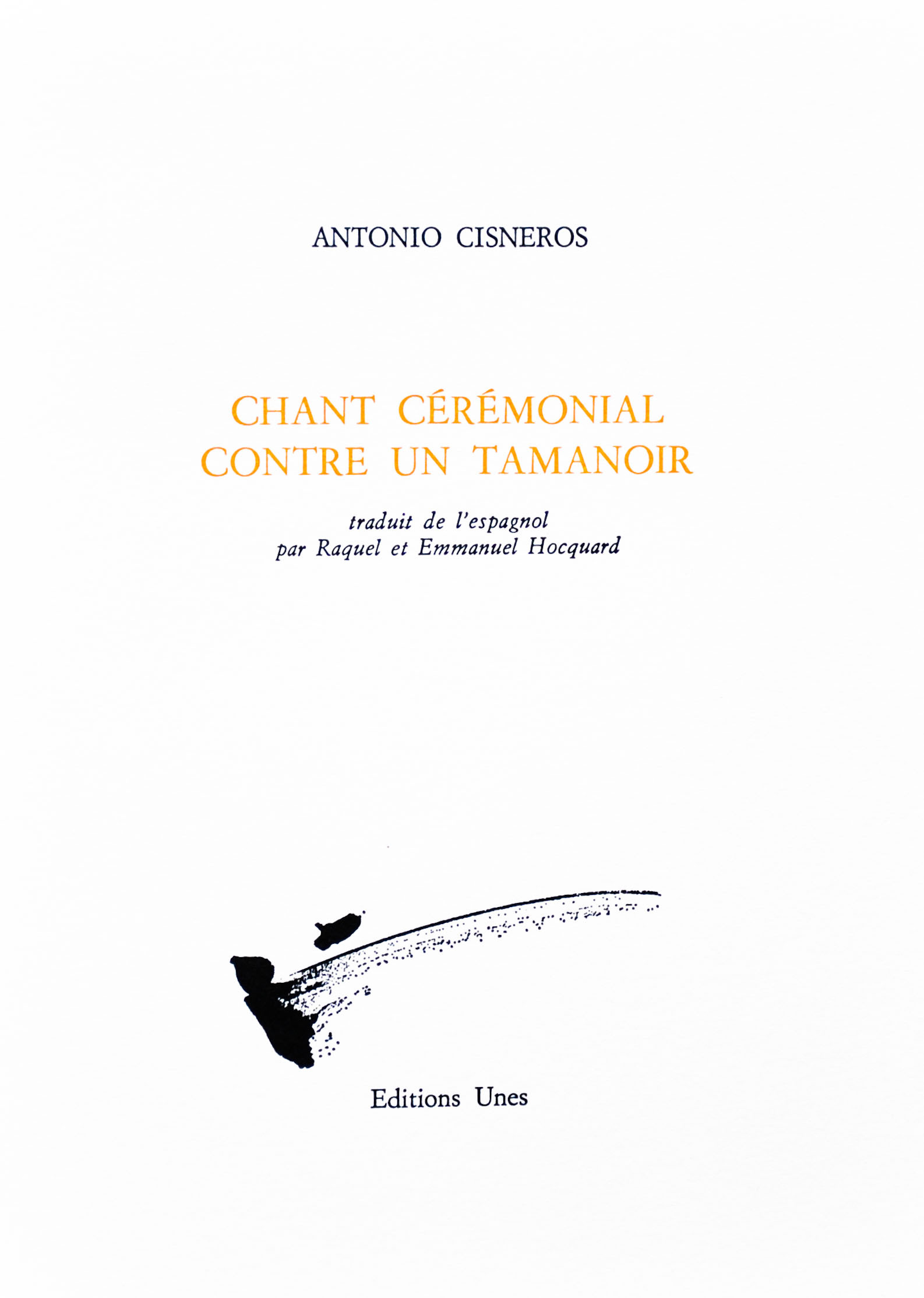 Canto ceremonial contra un oso hormiguero, qui reçut le prix Casa de las Americas, la plus haute distinction poétique de l'époque, a été publié à La Havane en 1968. Le livre comportait trois sections, dont la première, la plus importante, traduite ici, donnait son titre à l'ouvrage. "Les poèmes de ce livre, écrira-t-il plus tard, étaient remplis de vie vécue. Pour cela, j'avais eu recours à de longs versets qui s'enroulaient sur les pages comme des serpents. J'avais besoin d'un espace où réunir les données de l'âme et du corps. Le foie, le cœur, et la tête.L'histoire domestique et l'histoire collective. Je pense que, pour l'essentiel, j'ai réussi. Le langage allait et venait entre la solennité et l'argent, baignant dans un optimisme narquois. Ainsi coulaient mes jours dans la vie réelle."