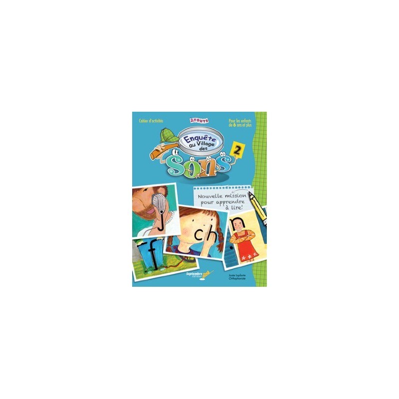 Cet ouvrage est le deuxième d’une série de trois cahiers visant l’apprentissage de la lecture. Il est conçu selon l’approche Raconte-moi les sons. Le cahier d'activités Enquête au Village des sons 2 propose une nouvelle enquête pour apprendre à lire aux apprentis détectives de 6 ans et plus qui sont des Lecteurs débutants ayant complété le cahier Enquête au Village des sons 1 ou possédant des préalables équivalents ou des Lecteurs en difficulté ayant besoin de revoir des notions de base en lecture. Cette nouvelle aventure au Village des sons permet à l'enfant d'apprendre à lire : Les sons des voyelles et consonnes j, f, ch, oi, n, v, é et on; Des syllabes et des mots combinant ces sons et ceux appris dans le cahier Enquête au Village des sons 1; Les mots globalisés « est », « où », « avec », « j'ai », « pas » et « qui ». Le cahier comprend 78 pages d'activités, des conseils pratiques pour l'accompagnateur, des cartes repères à découper. 6 à 7 ans.