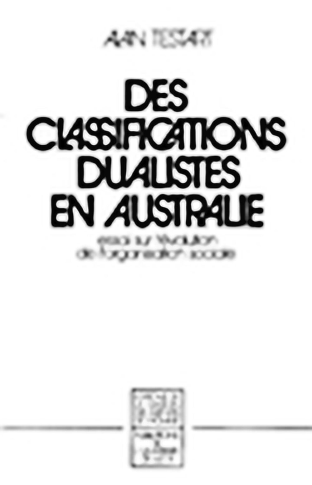 Des classifications dualistes en Australie