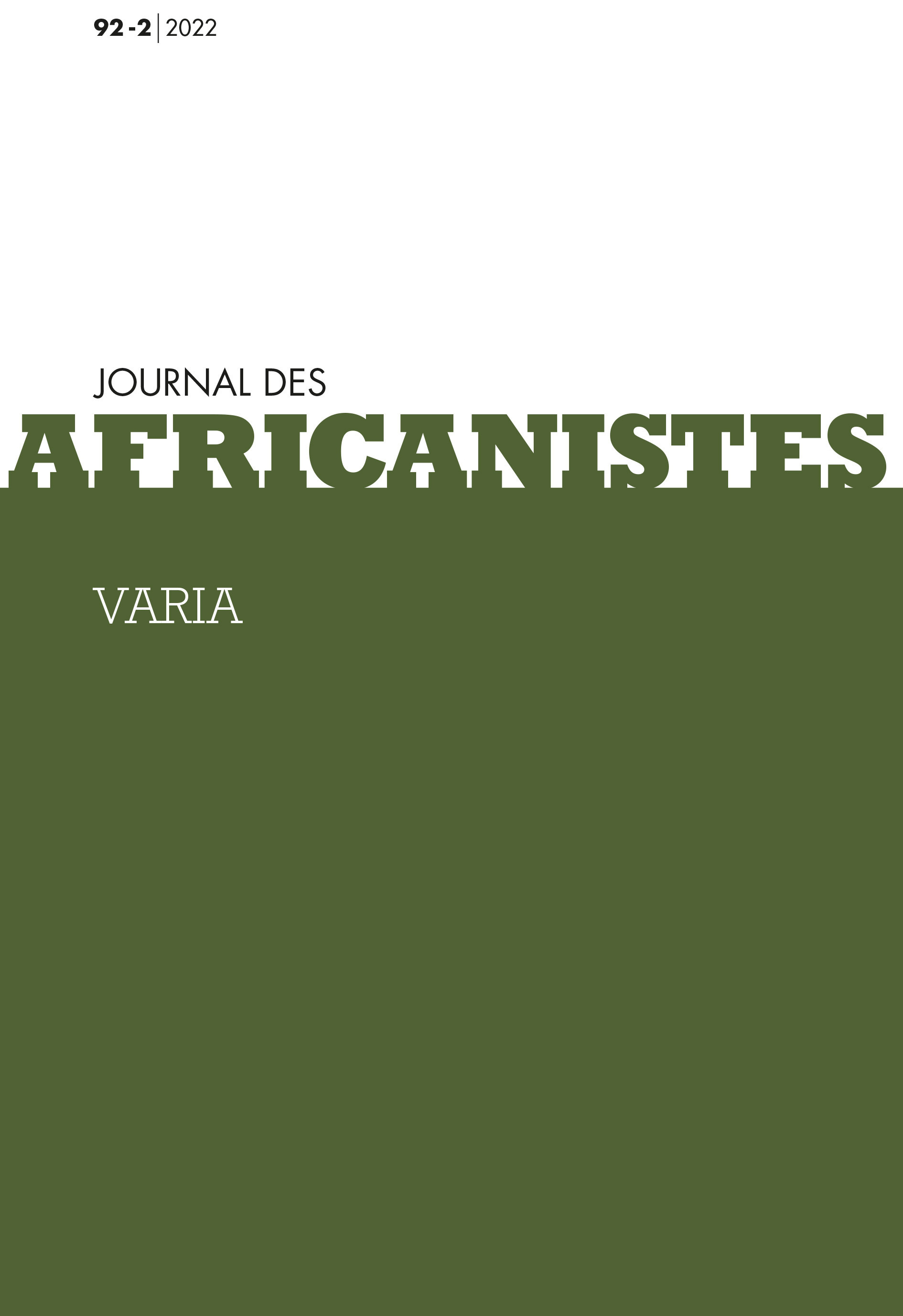 JOURNAL DES AFRICANISTES, TOME 92, N 2/2022