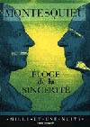 Avancer masqué, comme le revendiquait Descartes, c'est aujourd'hui une nécessité, quasi une vertu, pour qui veut avoir la chance de jouer dans cette société du spectacle qu'est devenue la démocratie. Alors, que nous donne à entendre Montesquieu dans son Eloge de la sincérité ? Tout simplement que la dissimulation est une attitude psychologiquement, moralement et politiquement intenable.