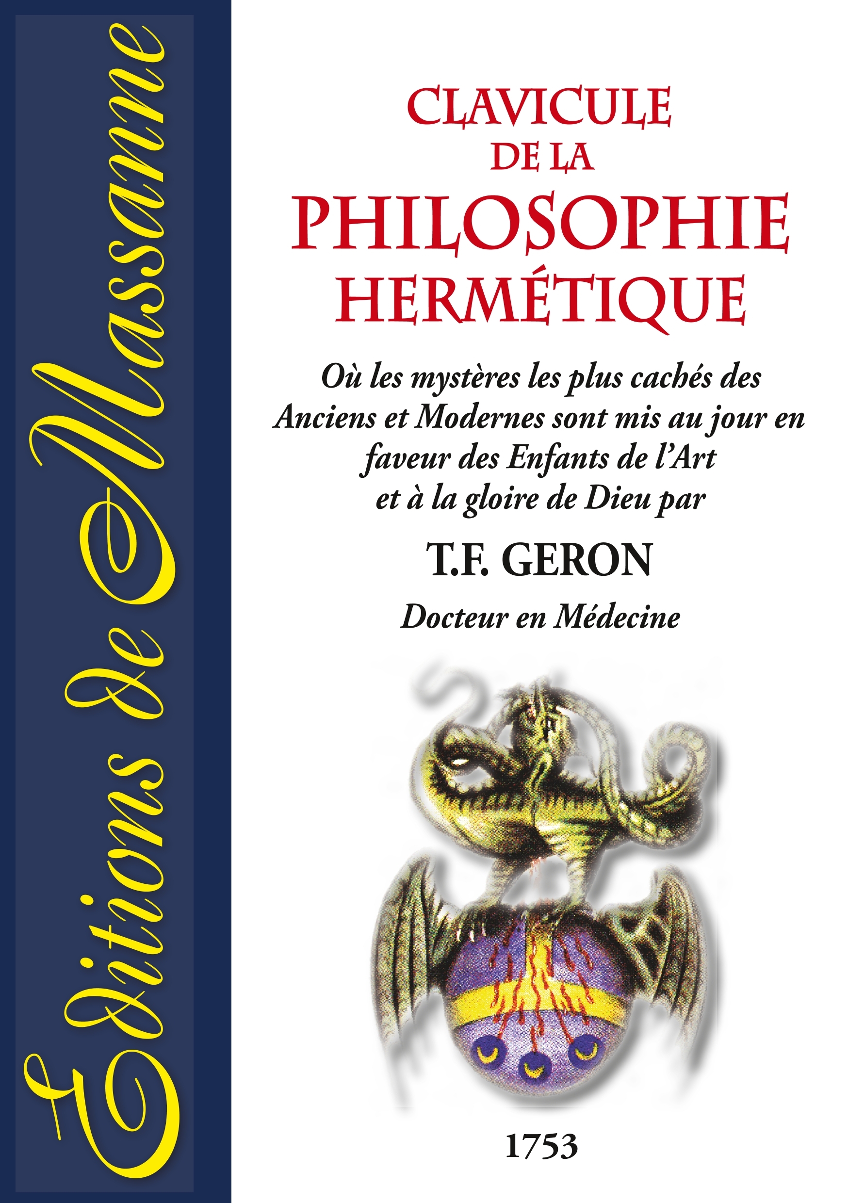 Cette Clavicule de la Philosophie Hermétique est très certainement une adaptation de Alchymia denudata (Alchimie dénudée ou Alchimie dévoilée), vraisemblablement écrite par le mystérieux Naxagoras, annotée peut-être par Géron lui-même et complétée d'une préface importante où les principes de base du processus alchimiques sont étudiés, catalogués, référencés. C'est un ouvrage assez rare et peu connu qui montre plusieurs aspects techniques du Magistère et notamment celui de la Médecine Universelle. Le texte original étant assez difficile à lire, il nous a semblé important de proposer une version modernisée tout en respectant le style de cette époque et la syntaxe. Seule la ponctuation a été totalement revue pour une meilleure compréhension du texte.