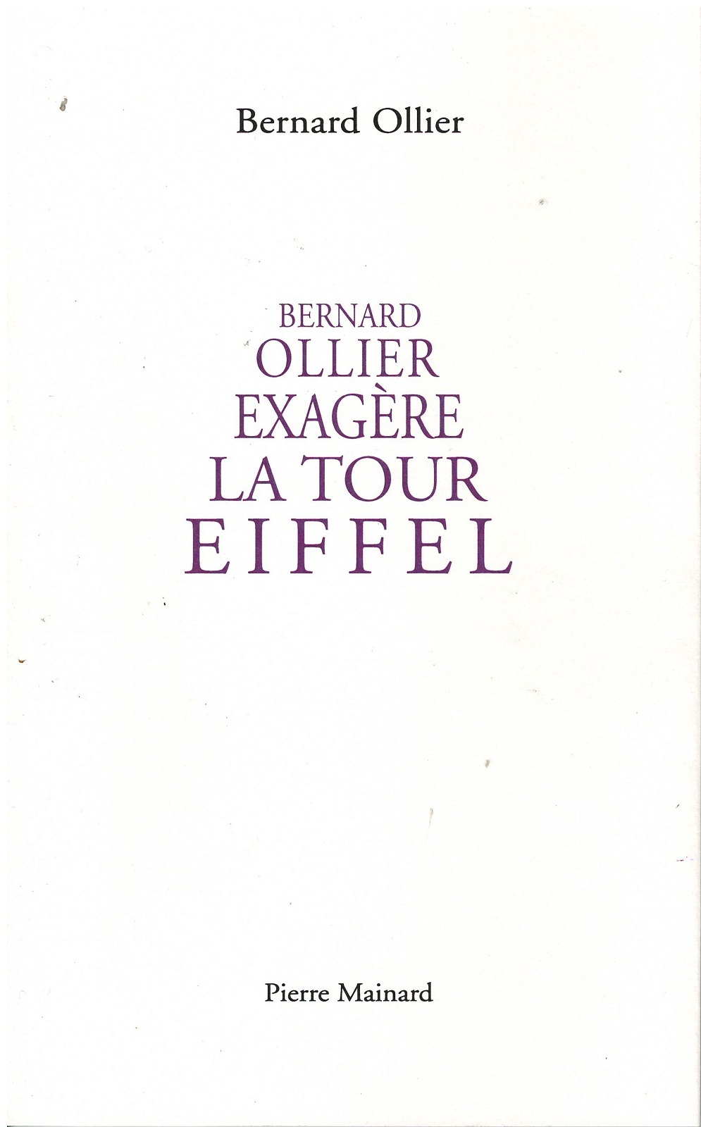 « Qui ? dites-vous : “Qui exagère la Tour Eiffel ?” C’est une de vos devinettes ? Eh bien, je dirais... Guillaume Apollinaire ? — Ah oui : “Bergère, Ô Tour Eiffel le troupeau des ponts bêle ce matin...” oui, bien sûr, mais non. — Sonia Delaunay, alors ? — Non plus. — Son mari, en décorateur de produits dérivés, tabliers, torchons et serviettes à la page 23 ? — Pas davantage. — Et si je disais... Raoul Dufy ! page 23, pareil ? — Vous n'y êtes plus du tout ! Vous allez chercher bien trop loin : c’est tout bêtement Bernard Ollier qui exagère la Tour Eiffel. — Alors là, c'est vous qui exagérez, je le sais bien que c’est Bernard Ollier, puisque c’est le titre qui le dit ! Mais le titre ce n’est qu’un titre, et tout ça ne nous dit pas qui est l’auteur du titre. — Ah ça, par exemple ! mais l’auteur... L’auteur du titre, c'est justement Bernard Ollier ! » Bernard Ollier vit, écrit, crée dans le Gers, il lève chaque jour les yeux sur la tour d’un château ouvert à tous les vents de l’imaginaire... Dans ce livre, l’auteur, tout à la fois nostalgique, drôle, coquin, voire entêtant, nous entretien de la (sa) Tour Eiffel en des termes peu communs !