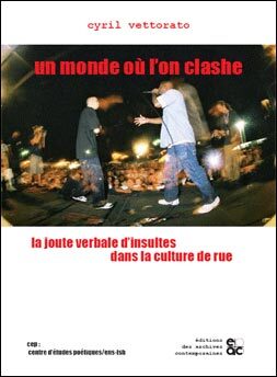 Pratique poétique courante dans des lieux et à des moment historiques variés, la joute verbale d’insultes connaît dans la culture de rue contemporaine une actualisation originale. C’est d’abord le jeu des dozens, litanies d’insultes matricides nées dans les ghettos africains américains du début du vingtième siècle ; puis, à l’ère du hip-hop, la fameuse battle dans laquelle les rappeurs s’affrontent à coups de rimes coups de poings. Evènement poétique où la cacophonie côtoie une certaine sophistication, le clash fait du style un emblème de pouvoir et le vecteur d’une identité sociale.