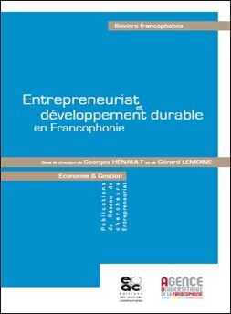 L’Agence universitaire de la Francophonie (AUF) est un promoteur de la francophonie économique depuis prés d’un quart de siècle, par le biais, notamment, de son réseau de chercheurs en Entrepreneuriat, de l’Institut de la Francophonie pour l’administration et la gestion (IFAG), de son Institut de la Francophonie pour l’entrepreneuriat (IFE).§À l’occasion du sommet de la Francophonie de Québec, il est apparu opportun de faire le point sur les acquis scientifiques et conceptuels d’un des défis majeurs de ce début de siècle, à savoir le développement durable tel qu’il est vécu et véhiculé au niveau entrepreneurial par les acteurs œuvrant au sein de la francophonie économique.§Ce livre est un recueil de contributions d’universitaires en provenance de Bulgarie, du Canada, du Cameroun, de France, de l’île Maurice, de Suisse et de Tunisie. Il se veut révélateur, sans prétendre à l’exhaustivité bien sûr, de quelques spécificités de l’apport francophone à une meilleure compréhension des liens entre entrepreneuriat et développement durable.§