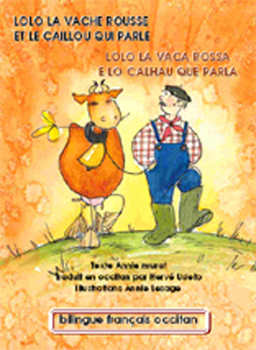 Lolo la vache rousse fait une drôle de rencontre. Texte français et texte occitan côte à côte. Gros caractères pour l'apprentissage de la lecture.