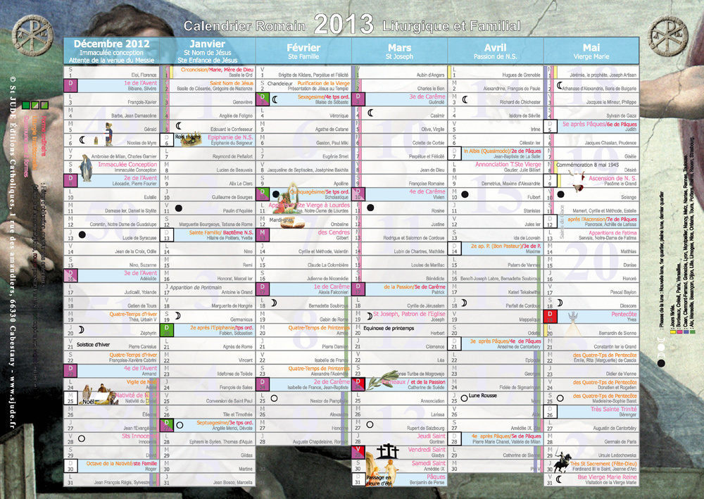 CALENDRIER ROMAIN 2013 LITURGIQUE ET FAMILIAL