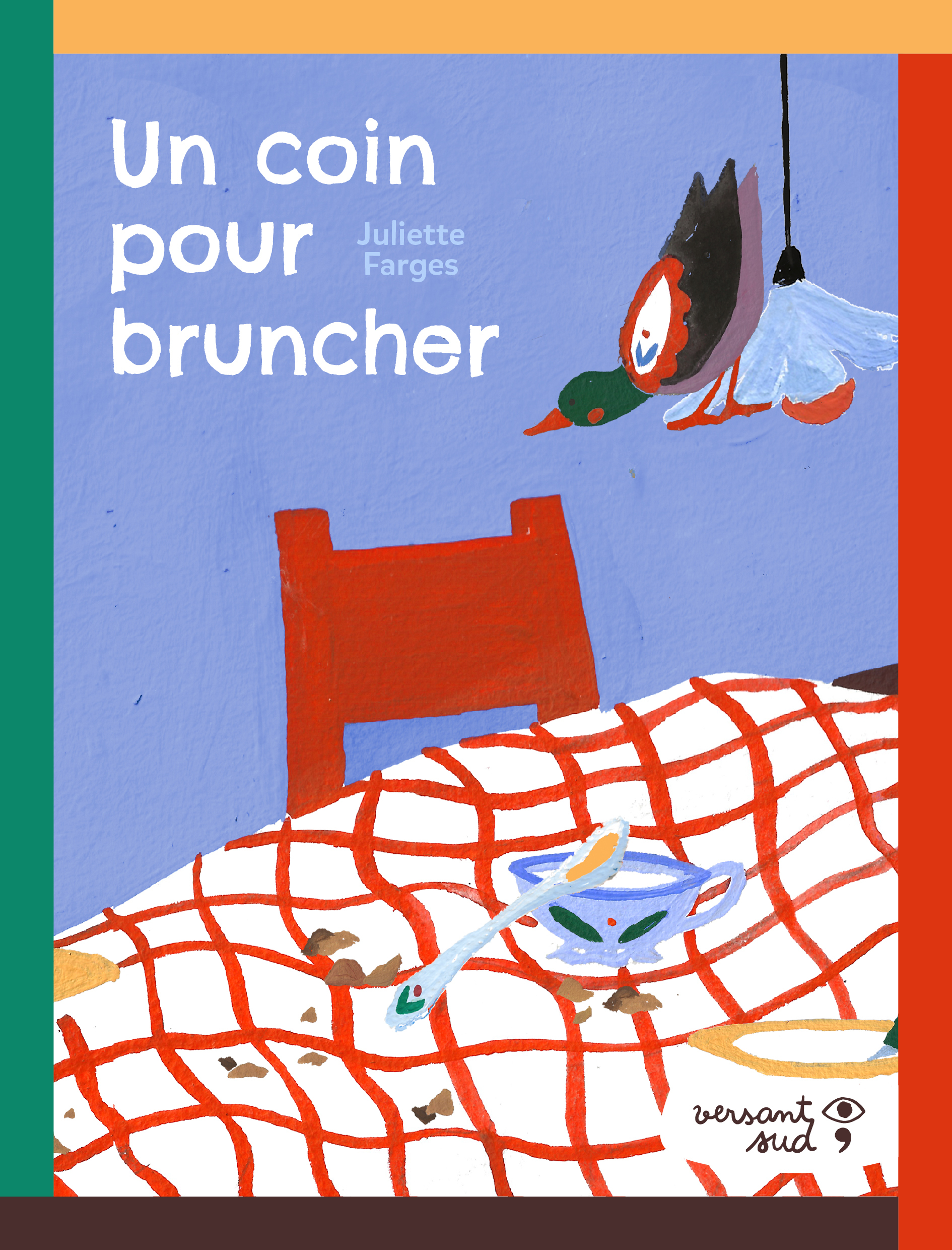 Ce matin, tous les canards se réunissent pour bruncher. Et Philippe qui avait complètement oublié! Brioche moelleuse pour se réveiller, soupe orange pour barboter, confiture, œufs troués ou chocolat chaud épicé, il y a de quoi se régaler ! Philippe fera un d’une nappe à carreaux un baluchon pour emporter les cookies restants. Aussi illustratrice que pâtissière, Juliette Farges a combiné ses deux métiers ! Elle crée deux petits albums mêlant une histoire et des recettes, conçues pour être facilement réalisées par des enfants. Ses illustrations naïves et gourmandes ajoutent de la fantaisie à ses récits culinaires.