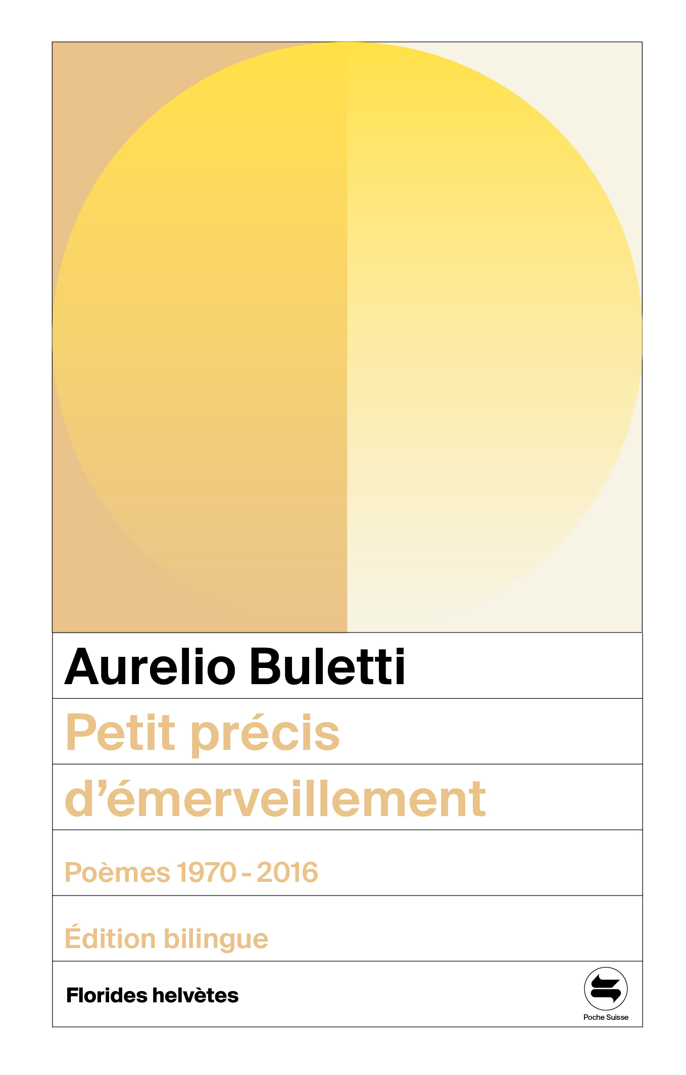 Qu’aucun échouage n’arrêtecette frêle barque de motssur laquelle joyeuxje rame et je fredonnepour te faire deux cadeaux : cette lumièrequ’ici je vois en écrivantet son souvenirPetit précis d’émerveillement. Poèmes 1970-2016 : au fil des pages se dévoile sur plus de quarante ans l’œuvre légère et profonde, spontanée et emplie de sagesse, humble et sublime d’Aurelio Buletti. Cette anthologie inédite, préparée et traduite par Christian Viredaz, réunit des poèmes dont certains trouvent ici leur première traduction en français. Rare panorama embrassant l’intégralité de l’œuvre d’Aurelio Buletti, Petit précis d’émerveillement. Poèmes 1970-2016 est présenté en édition bilingue, avec une préface de Yari Bernasconi, poète et écrivain.