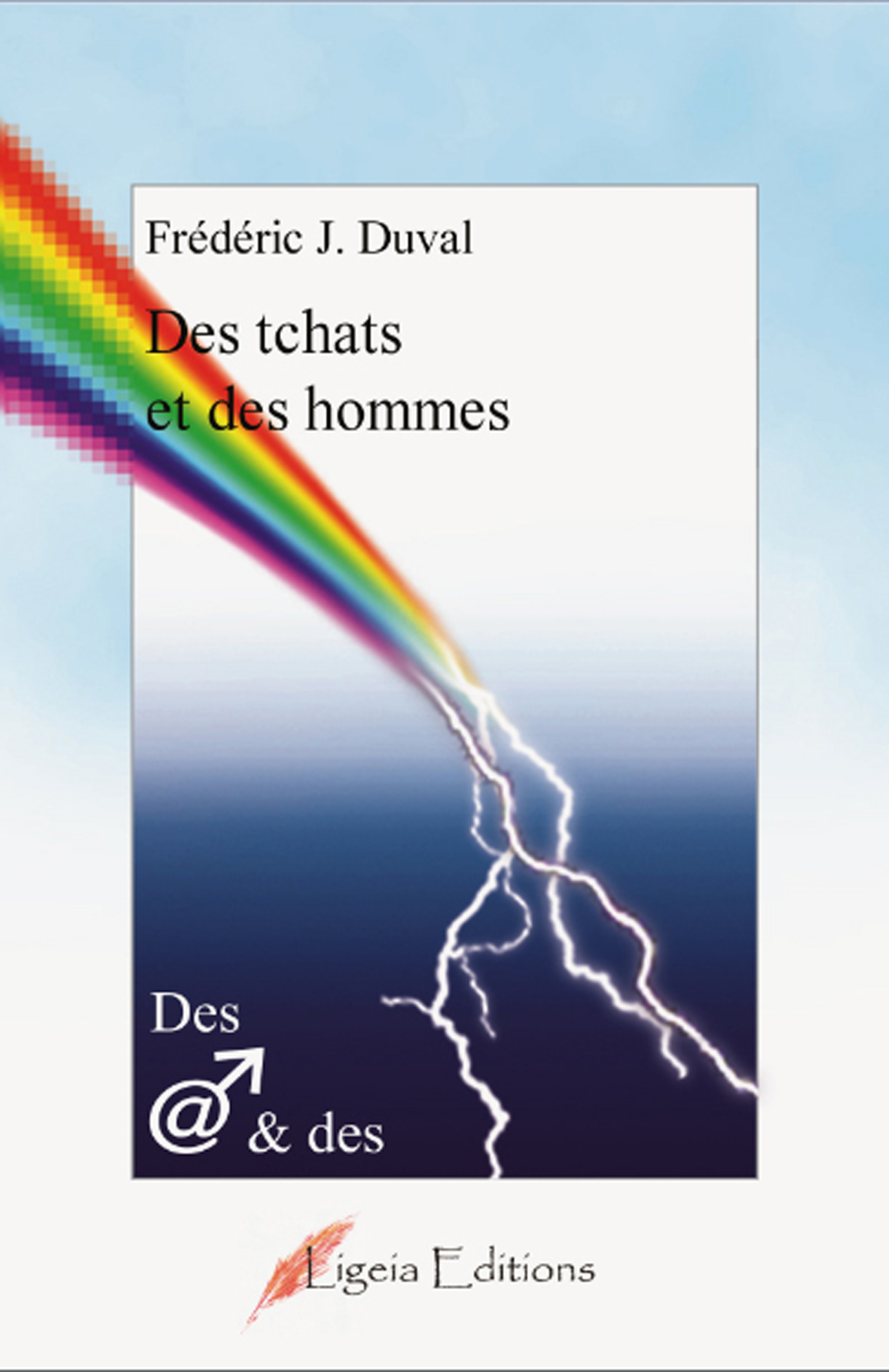 DES TCHATS ET DES HOMMES ou comment capturer le monde virtuel dans les pages d'un livre ! A son retour de vacances, Gero qui file le parfait amour avec Eglantine, ne s'attendait pas à se faire plaquer dès leur arrivée. Ni à se faire voler ses valises. Et pourtant ! Tout ce qu'il reste alors à Gero, c'est son meilleur ami Rodérick, et internet... Car, si le premier est loin d'être un internaute aguerri, le second, lui, surfe sur la toile, avec une aisance déconcertante. Et la vie paisible de Gero prend soudain une dimension toute inattendue quand son ami le propulse malgré lui, dans un monde dont il ignore tout. Jusqu'au jour où il reçoit le message d'une inconnue : "Gero, j'ai retrouvé vos valises." Entre S. M. S., mails, faux profils, rencontres, quiproquos, réseaux sociaux et autres cyber-gadgets, très vite, plus personne n'est qui il prétend être... Attention, tchats en vue ! Pour son deuxième livre, et son premier roman, Frédéric J. Duval, offre aux lecteurs une comédie drôle et moderne. Boîte de réception, messages envoyés, mots de passe, connectez-vous page 5.