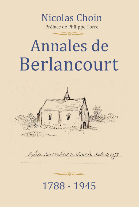 L'Histoire du village, année après année, de 1788 à 1945. La rédaction de ces annales, s'appuie sur les archives municipales et les documents conservés aux archives départementales de l'Aisne. Les faits divers, parfois croustillantes, proviennent des journaux de l'époque. Le tout est complété par les travaux laissés par les historiens locaux et des témoignages écrits laissés par les anciens. Préfacé par Philippe Torre, Maire de Berlancourt.