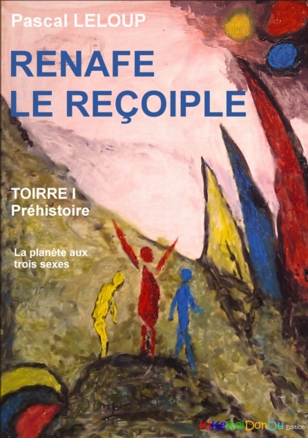 La propagation de la vie sur Toirre est liée au chiffre trois : trois sexes, trois parents qui en mélangeant leur patrimoine génétique créent un nouvel être, qui lui-même vivra dans une société composée de Femmes, d’hommes et de reçoiples. Ce système tri-sexué facilite le processus d’évolution des espèces en multipliant des mutations aussi bien mineures qu’extravagantes. Certaines de ces évolutions d’apparence mineure peuvent pourtant changer la face du monde… *** Préhistoire : Les humains vivent dans des cavernes. Renafe, un jeune reçoiple mutant, est épargné par sa mère car sa différence est minime : une troisième tempe discrète au centre de son front. Cette différence le rend plus curieux et plus créatif que ses congénères, ce qui lui cause bien des malheurs, car un reçoiple se doit d’être, dès le plus jeune âge, effacé et servile. Ille subira l’insoutenable et n’aura d’autre choix que de fuir, seul, et de s’inventer un destin. Lors de son parcours initiatique, ille rencontrera d’autres marginaux. Ensemble, ils fonderont les bases d’une grande civilisation…