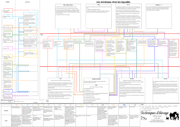 Les minéraux sont le casse-tête de l'alimentation équine avec leurs interactions variées, leurs excès, leurs carences. François Kaeffer de l'équipe de Techniques d'élevage a réalisé une synthèse des connaissances actuelles sur les interactions minérales. Grâce à ce poster, vous pourrez comprendre les phénomènes, raisonner les interactions, analyser l'alimentation de vos chevaux et préserver leur santé. Un indispensable pour tous les professionnels et les passionnés.