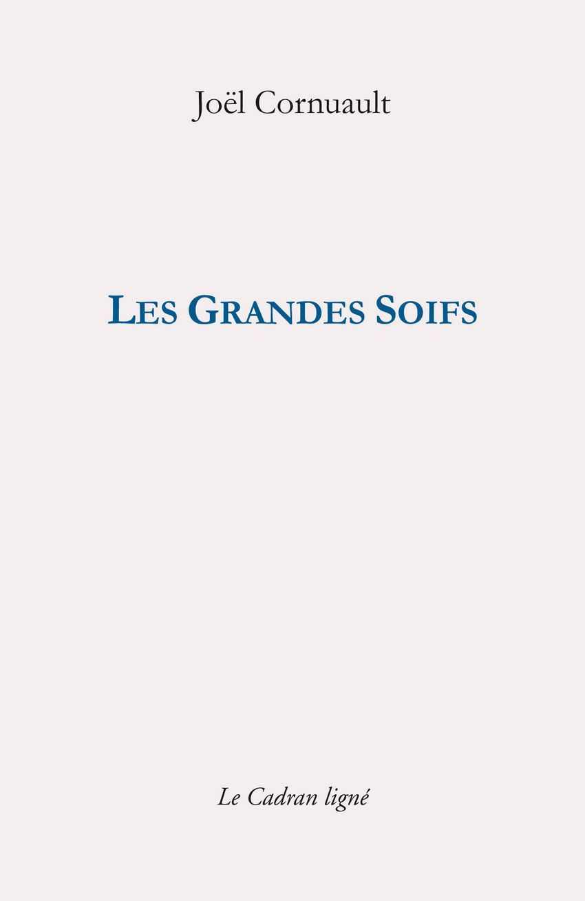 Les Grandes Soifs appartient à un enchaînement d’écrits de Joël Cornuault commencé avec Chroniques désordonnées (1997) et se prolongeant jusqu’à Dromomanies (2018). Cette suite a peu varié dans sa forme : rêveries, réflexions et moments d’exaltation librement associés. Les Grandes Soifs conduisent à l’écart, hors de ce temps, de son langage et de ses lieux qui récusent la vie. Elles valorisent le jeu, les enchantements de l’enfance ; le goût des mondes inaperçus ; le commerce avec les intercesseurs du merveilleux, poètes de l’abondance et du luxe vrais, que sont l’amitié, le rêve heureux, l’amour.