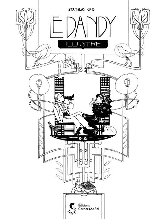 A la Belle Époque, un couple à l’avant-garde s’approprie à sa façon les nouvelles inventions, nous faisant découvrir ce qu’est le dandysme en 22 leçons humoristiques, avec originalité et finesse de traits exécutés au stylo à bille. Le dandy est un personnage qui essaie de faire son intéressant. Mais qu’est-ce qui peut rendre quelqu’un intéressant ? Est-ce la nouveauté, comme être parmi les premiers à posséder une automobile, un hélicoptère, des patins à roulettes, un photophone ou même une bande dessinée, qui sont autant d’inventions de la Belle Epoque et qui font encore partie de notre quotidien aujourd’hui ? Est-ce quelque chose de différent, comme adopter le dîner au clystère ou le menu pythagoréen, boire du champagne dans son soulier ? Ou enfin est-ce une autre manière d’être, comme assortir la couleur de son animal de compagnie à sa cravate ? Stanislas Gros a dessiné avec plusieurs stylos à billes. Un rouge, un vert souvent discrets, un bleu qui immortalise la cathédrale engloutie, un noir, et là aussi quel noir ! Le fait de dessiner des situations très élégantes, avec cet outil a priori peu noble, aboutit à un rendu particulièrement ironique, tout en enrichissant la finesse de trait propre au style de Stanislas Gros, auteur du Dernier jour d’un condamné (Delcourt), du Portrait de Dorian Gray (Delcourt) et de La Nuit (Gallimard). Le résultat est une BD à la fois esthétique, référencée et empreinte d’humour subtil.