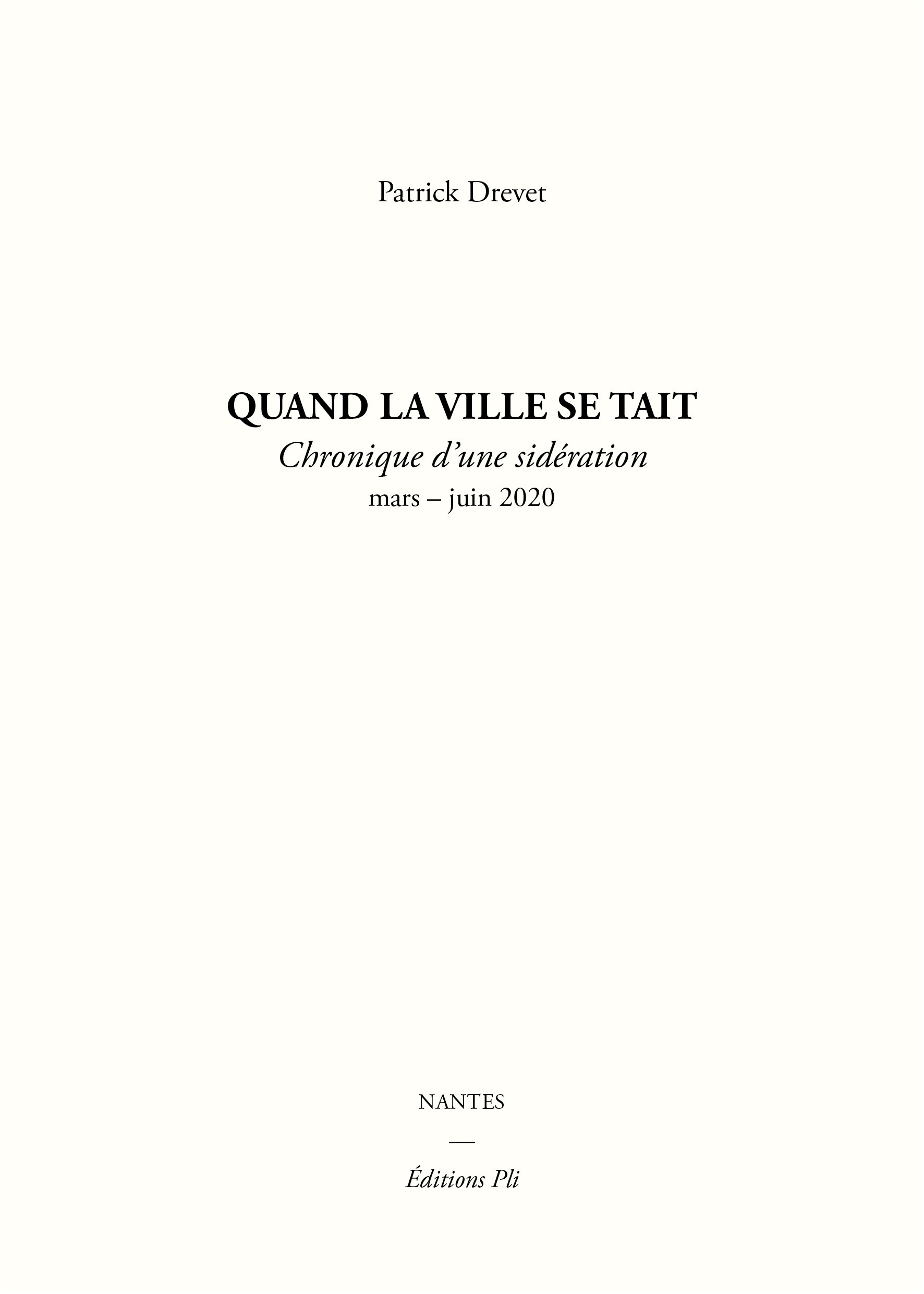 Quand la ville se tait, Chronique d'une sidération est écrit entre mars et juin 2020. Ce livre participe d'une observation de rage et de ferveur, sensible et rigoureuse, des formes et conséquences du confinement au jour le jour et dès son déclenchement. L'auteur part à la rencontre des vivants et en appelle aux gestes lisières. Quelle vie désirons-nous ? Quelles formes de vie sommes-nous prêts à défendre sans relâche ? Contre qui, et dans quelles conditions bouleversées ? Quand la ville se tait est accompagné de Choses vues, une contribution textuelle de Julien Coupat et alii.