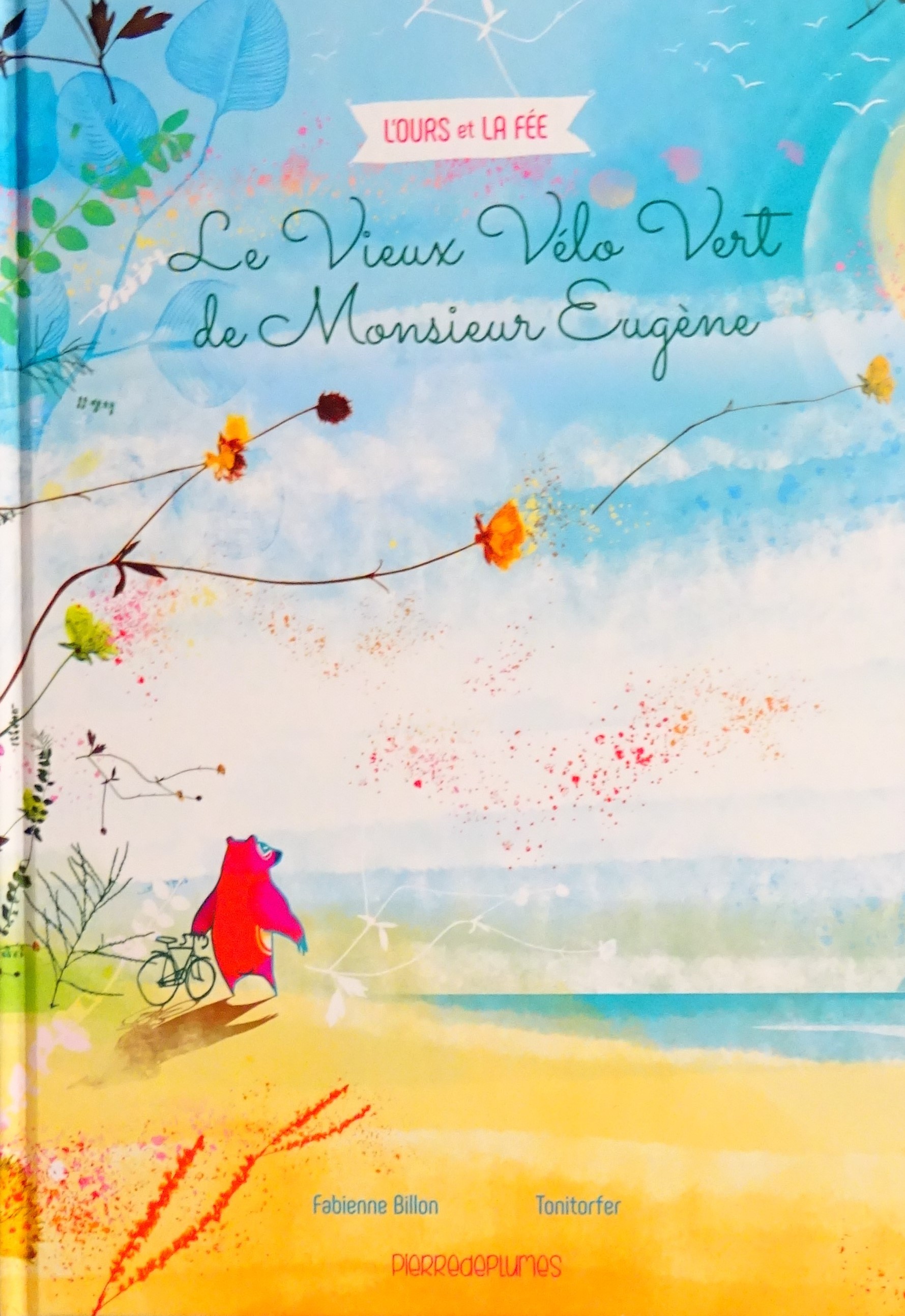 L’Ours passe ses vacances sur l’Ile aux Fleurs dans la maison de Monsieur Eugène et Madame Paulette. Un matin il se réveille de très bonne humeur car il a fait un rêve qui le rend joyeux. Il emprunte le vieux vélo vert de Monsieur Eugène et se met à foncer du matin jusqu’au soir vers un objectif, mais lequel ? Il observe chaque ruelle, chaque village, se délecte de tous les paysages,il scrute les horizons, comme s’il cherchait quelque chose ou quelqu’un… Ne serait-il pas en train d'essayer de réaliser son rêve ?