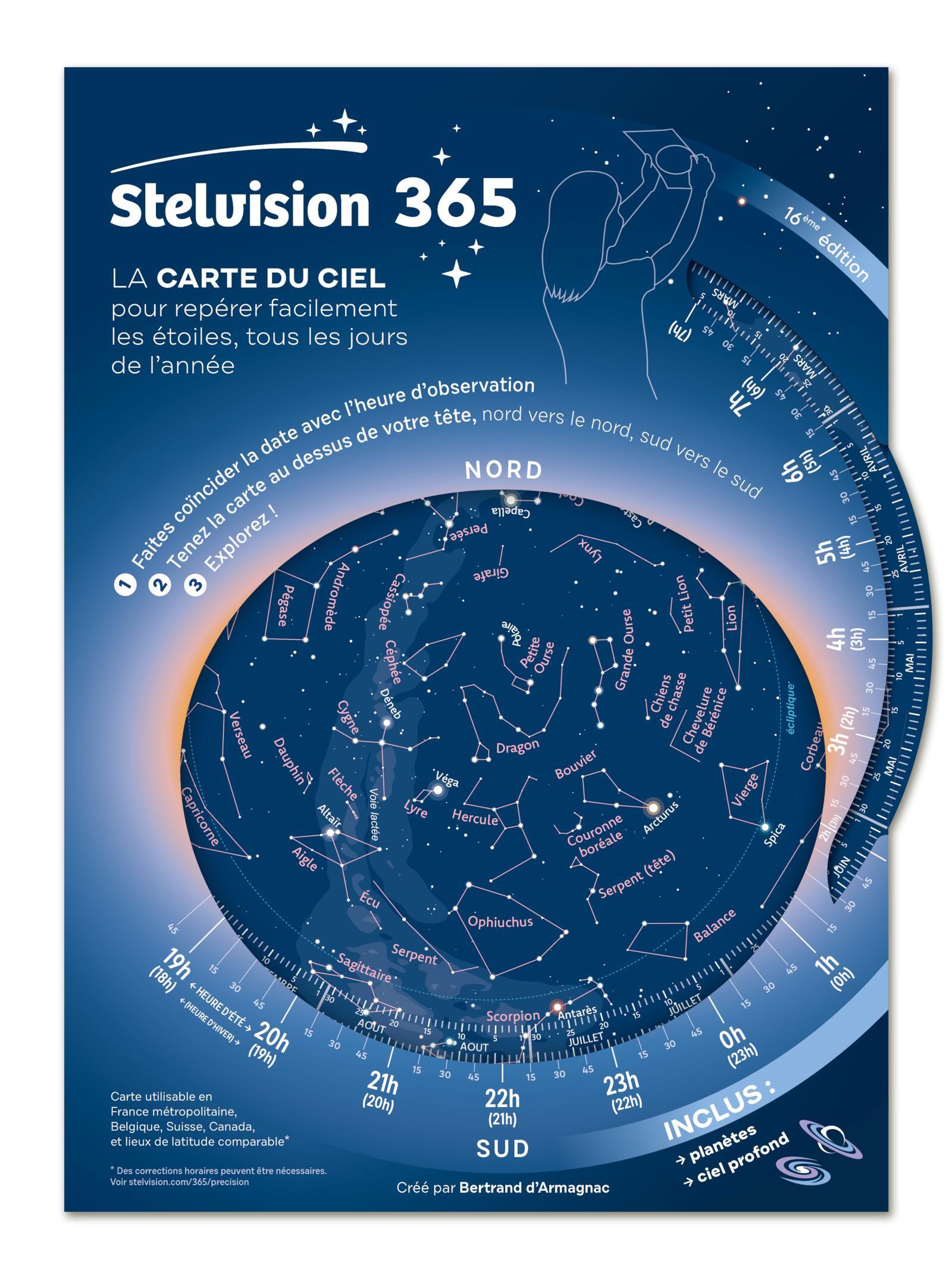 La carte du ciel pour repérer facilement les étoiles, tous les jours de l'année