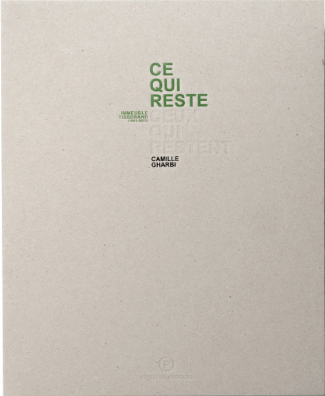 Réalisé avec l’envie commune de valoriser et de laisser une trace pérenne d’un projet de résidence de la photographe Camille Gharbi, il s’inscrit dans une continuité naturelle pour nous : goût pour le bel objet papier, pour les disciplines artistiques, et la photographie en particulier. En dix ans, Camille Gharbi a dévoilé un travail photographique puissant et engagé avec des séries qui abordent des sujets sociétaux qui suscitent le débat tels que la problématique des migrations (La jungle de Calais) ou les féminicides (Preuves d’amour et Les monstres n’existent pas). Son travail est régulièrement présenté en France et à l’international lors d’événements comme le festival Circulation(s), Les Rencontres d’Arles ou encore l’Arte Laguna Prize à Venise. Camille Gharbi a également été lauréate de nombreux prix, notamment – en 2022 – la Grande Commande Photographique portée par la Bibliothèque Nationale de France et le Ministère de la Culture, et pour laquelle elle dévoilera prochainement une série sur la masculinité. La série qui fait l’objet du livre « Ce qui reste, ceux qui restent », édité par les Editions Process, témoigne du ressenti des habitants de l’immeuble Tisserand à Bogny-sur-Meuse (Ardennes), contraints de quitter définitivement leur habitation, l’immeuble étant devenu vétuste et voué à la destruction. Elle a été réalisée dans le cadre d’une résidence artistique à l’initiative du bailleur social HABITAT 08 en partenariat avec l’association de photographie contemporaine La Salle d’Attente. Portraits, paysages, vues d’intérieurs dialoguent avec les témoignages d’habitants, parfois résilients, parfois amers, recueillis par l’artiste. C’est cet ensemble complexe qu’ont voulu restituer les Editions Process à travers le livre, un objet sensible qui cherche à rendre – avec une direction artistique qui amplifie le dialogue entre les écrits et les images – le plus préhensible possible l’intention de Camille Gharbi.