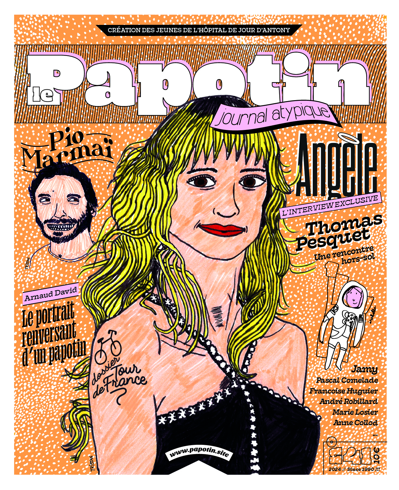 Numéro 41 avec : Un dossier spécial - Tour de France Ainsi que les interviews de : – Pio Marmaï et le festival Colis Suspect – Anne Collod à la maison des Métallos – Angèle, l'interview exclusive – Thomas Pesquet, l'interview Hors sol – Jamy, l'interview rêvée des journalistes atypiques – Pascale Comelade au festival Sonic Protest Un dossier photo autour de la photographe Françoise Huguier Une interview renversante d’un Papotin : Arnaud David Le tout accompagné des textes des Papotins et des illustrations de Tristan, Lucile Notin Bourdeau, Isabelle, Akli, Anne Cecile Bonnet, Valfret, Camille Lavaud Benito