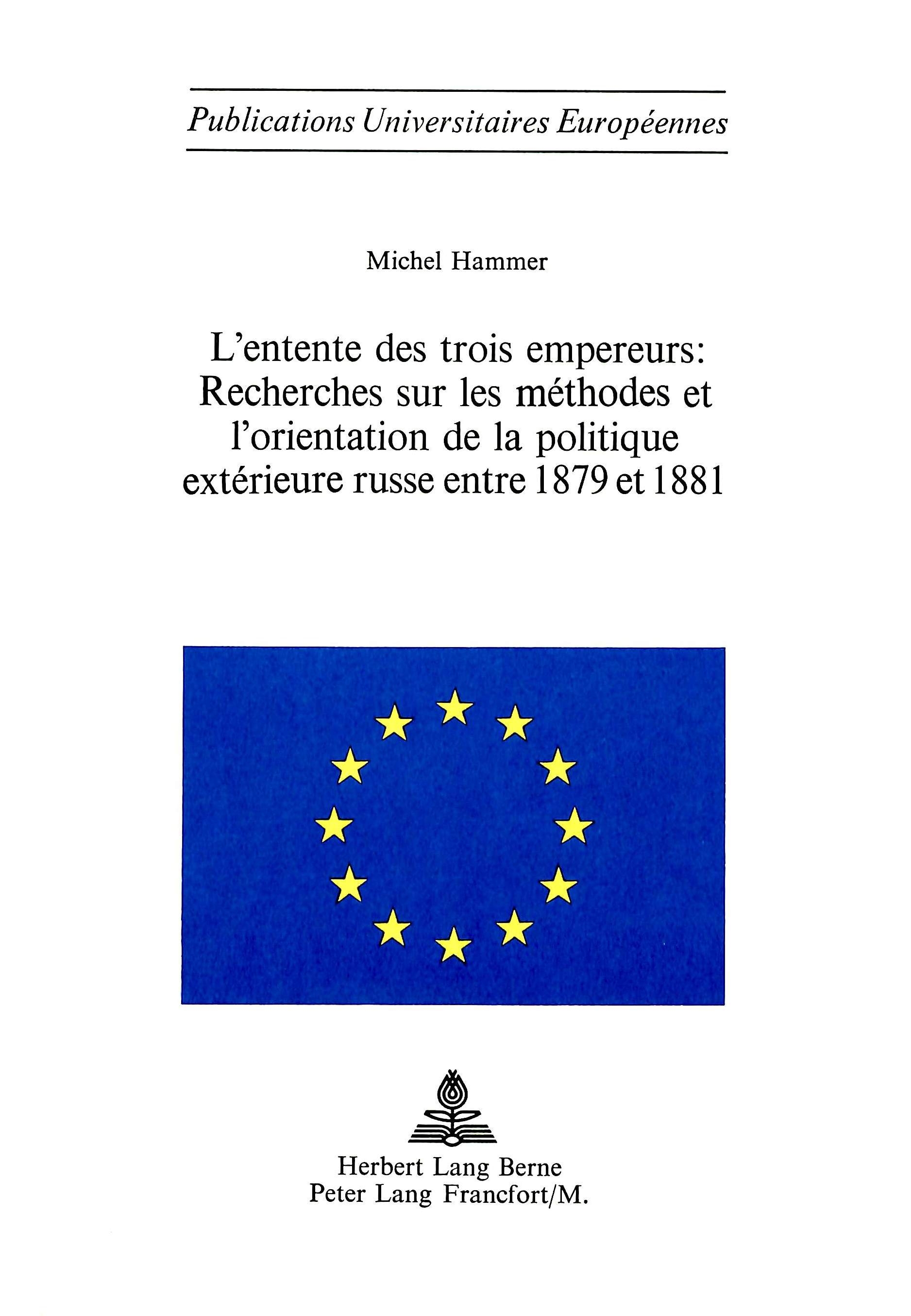 L'ENTENTE DES TROIS EMPEREURS: RECHERCHES SUR LES METHODES ET L'ORIENTATION DE LA POLITIQUE EXTERIEU