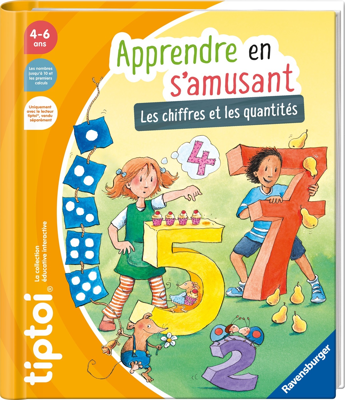 Découvre les chiffres ! Retrouve des jeux sur chaque page, des musiques et des centaines d'informations. 'Apprendre en s'amusant : les chiffres et les quantités" est un livre interactif accessible dès 4 ans. Fonctionne uniquement avec le lecteur tiptoi®, vendu séparément. tiptoi® est un lecteur éducatif interactif qui permet aux enfants de découvrir le monde de façon ludique et autonome. Lorsque l’enfant pointe le lecteur sur une image ou un texte, il entend des sons, des informations, des personnages ou de la musique. Apprendre n’a jamais été aussi vivant et ludique ! tiptoi® apporte une dimension nouvelle au contenu pédagogique des supports : que ce soit dans les livres, les jeux ou le globe, l’enfant n’a qu’à pointer le lecteur dessus et tout s’anime comme par magie ! Ce produit est composé de matériaux issus de forêts bien gérées certifiées FSC®, de matériaux recyclés et de matériaux issus d’autres sources contrôlées (FSC-C111262).