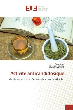 Artemisia mesatlantica M, espèce endémique du Maroc, est couramment utilisée en médecine traditionnelle dans le traitement des maladies des appareils digestif et génital. Cependant, cet aspect thérapeutique et les constituants actifs de cette plante médicinale sont très peu évoqués. Ce travail s'est fixé pour objectif de proposer une alternative aux traitements anticandidosiques actuels qui deviennent de plus en plus inefficaces face aux souches résistantes. Pour ce faire, trois extraits obtenus par macération dans des solvants à polarité croissante (hexane, dichlorométhane et méthanol) et un extrait aqueux par décoction ont été testés contre cinq souches de référence. Des dilutions à 1/2 allant de 50 mg/ml jusqu'à 0,095 mg/ml ont été réalisées. La méthode de microtitration, a permis de déterminer les CMI. Une étude phytochimique de l'extrait au dichlorométhane a été réalisée par combinaison de méthodes chromatographiques et spectroscopiques. Les extraits méthanolique et aqueux sont les plus actifs. Par contre, les extraits hexanique et au dichlorométhane ont montré une action fongicide. L'analyse phytochimique a prouvé la présence des lactones sesquiterpéniques et des flavonoïde