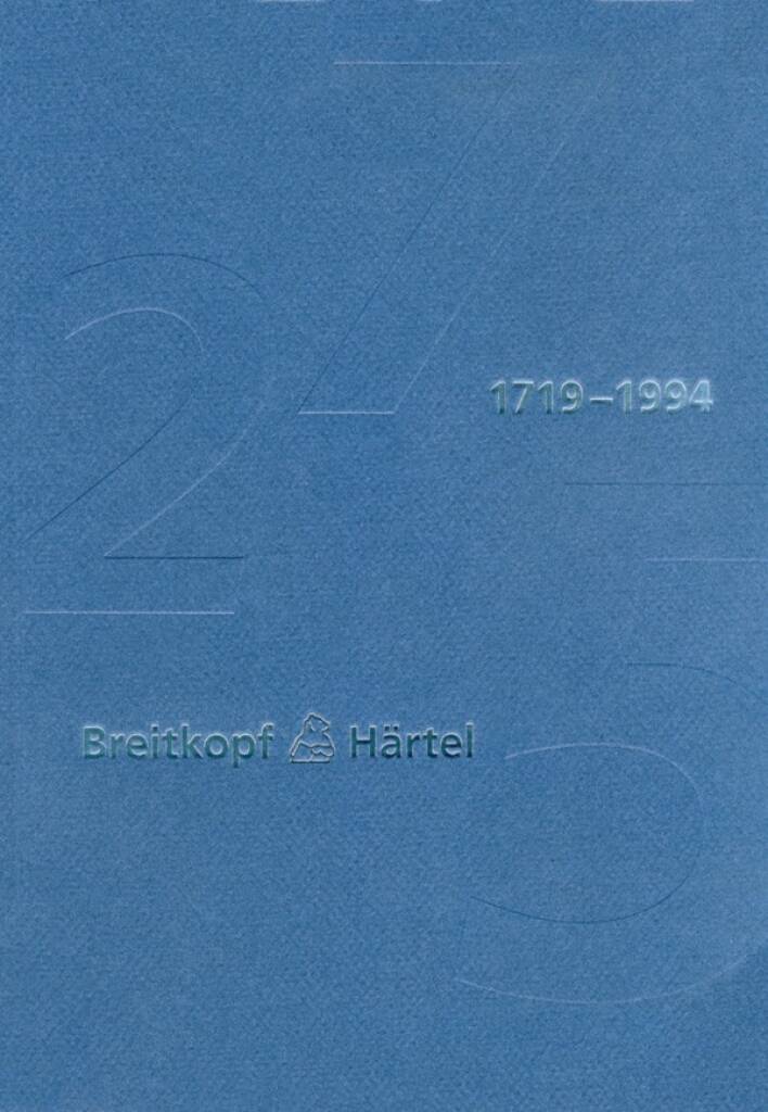 BREITKOPF & HARTEL 1719-1994 LIVRE SUR LA MUSIQUE
