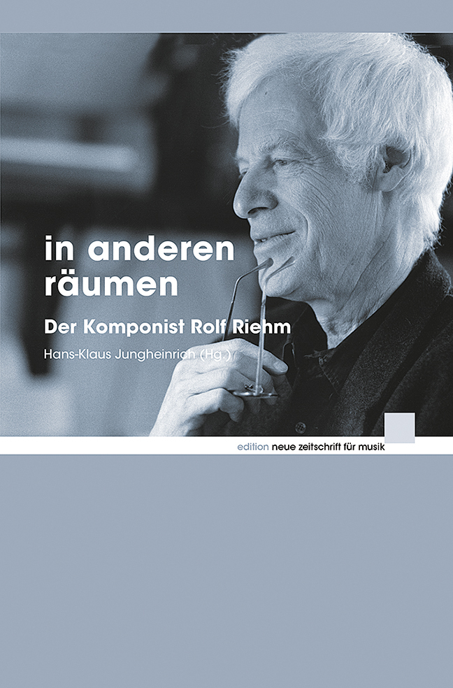Im Jahr 2012 fand in Frankfurt am Main das Kolloquium «In anderen Räumen» über und mit Rolf Riehm unter der Leitung von Hans-Klaus Jungheinrich statt. Der Band versammelt die Beiträge dieses Symposiums – ergänzt um zwei Aufsätze von Marion Saxer und Nicolas Schalz.