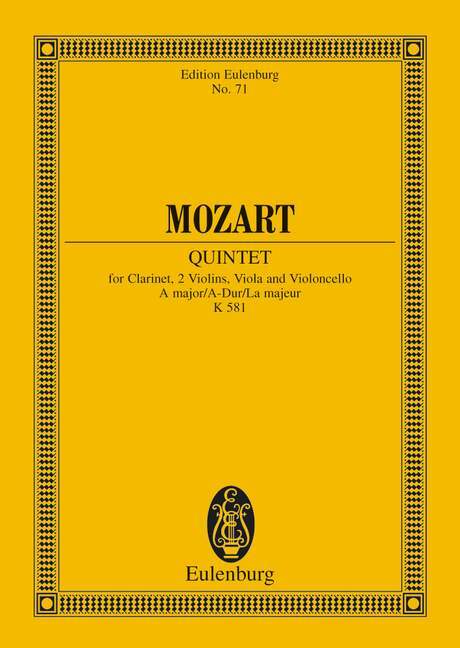 KV 581. clarinet, 2 violins, viola and cello. Partition d'étude.